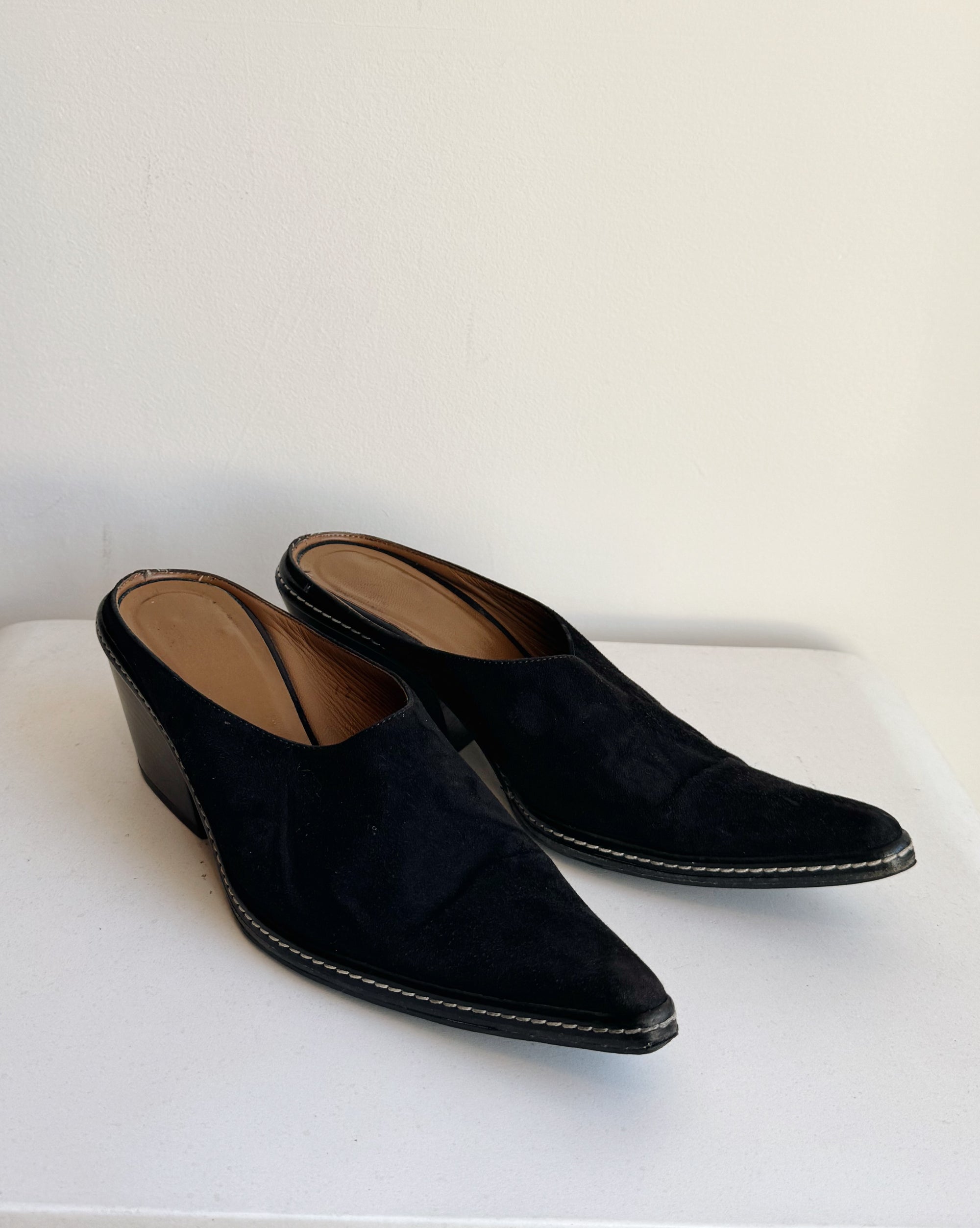 Donald J Pliner Black Suede Pointed Mule | Size 8