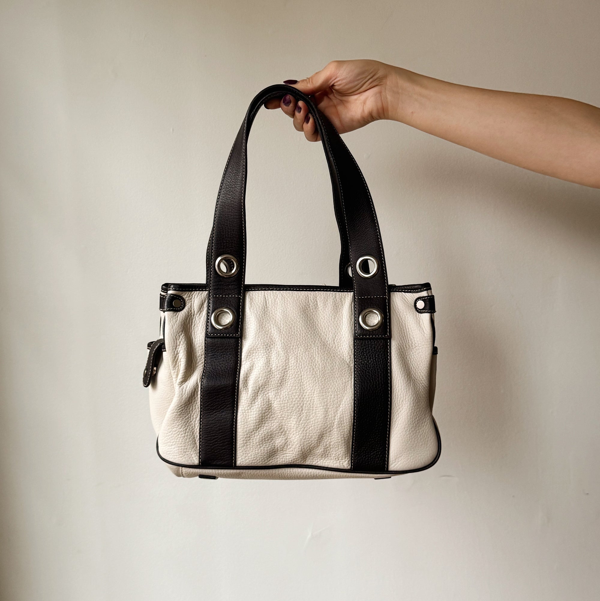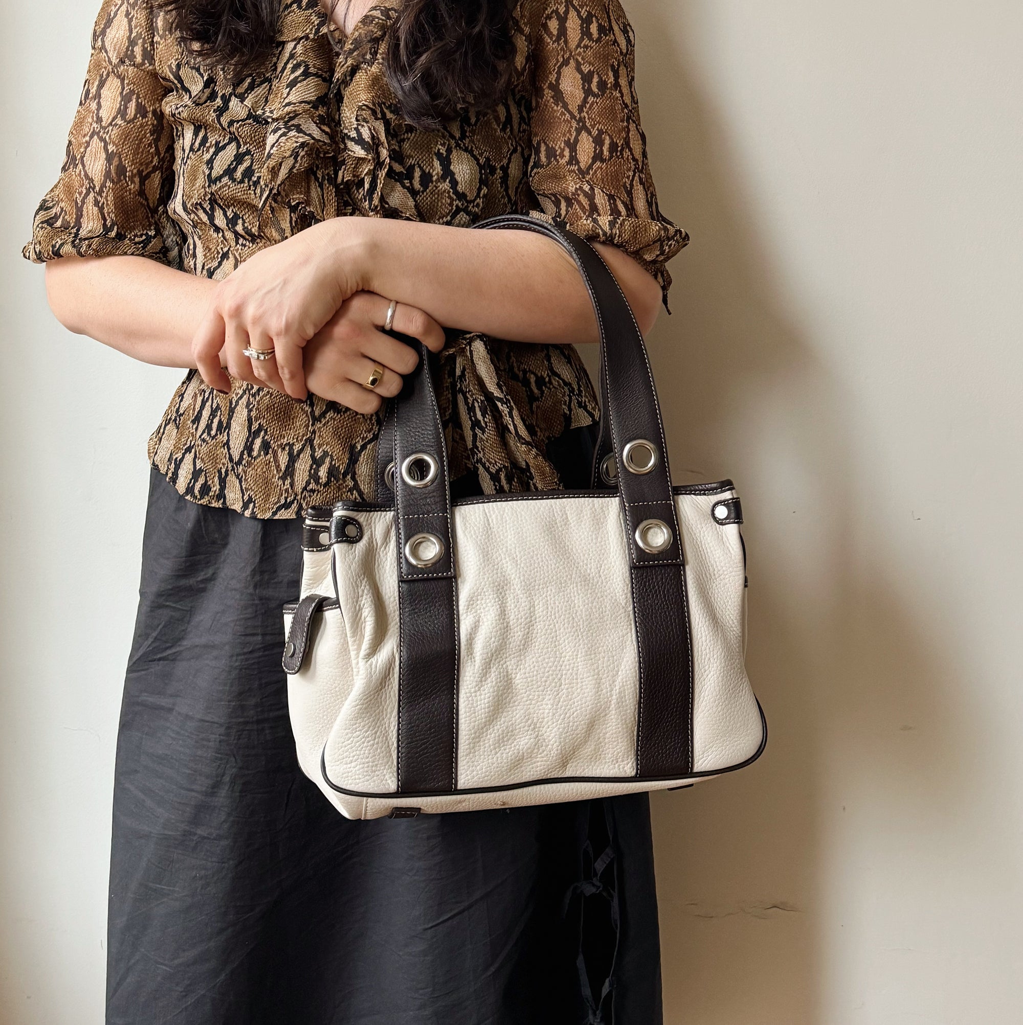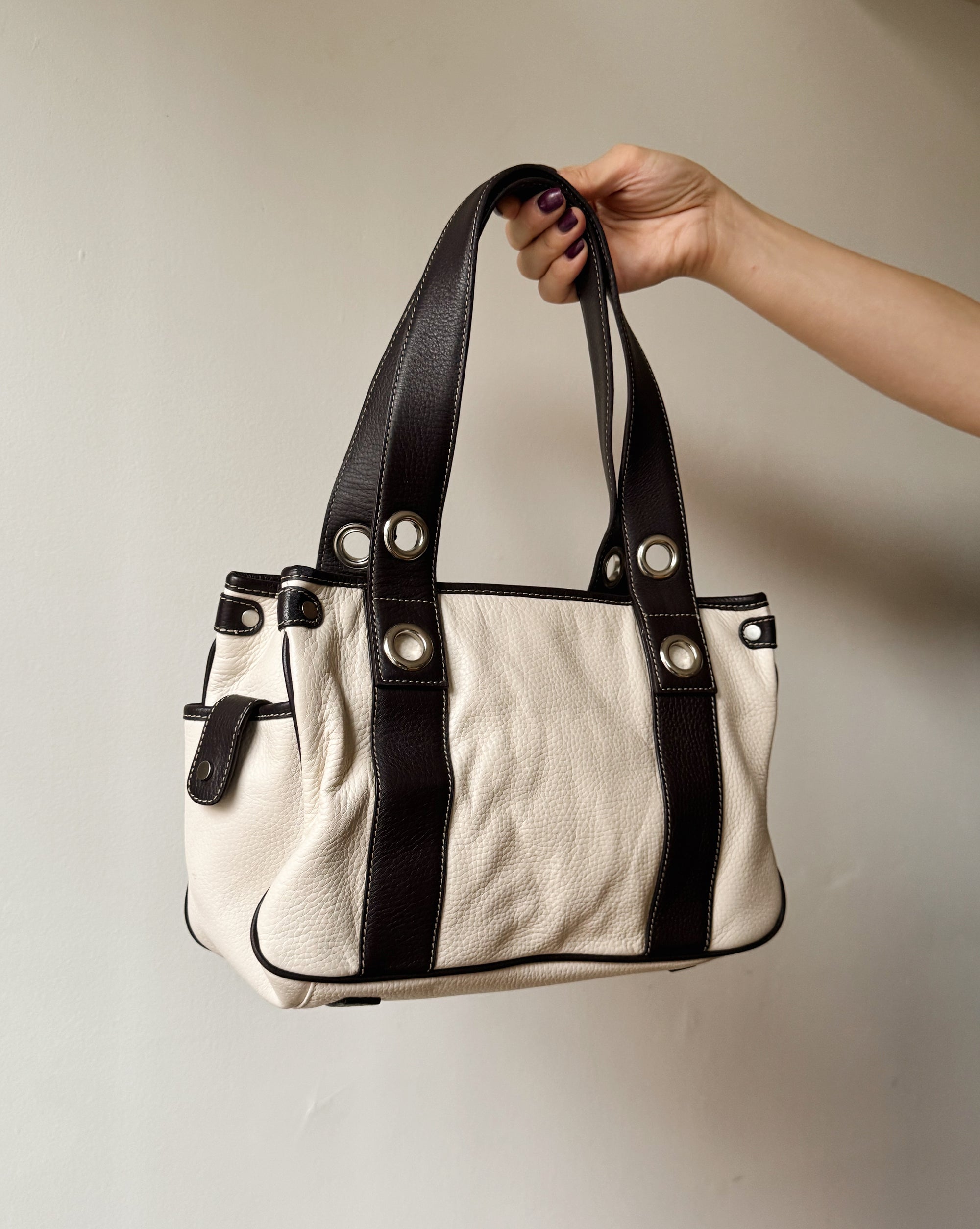 Ivory + Black Mini Duffle Purse