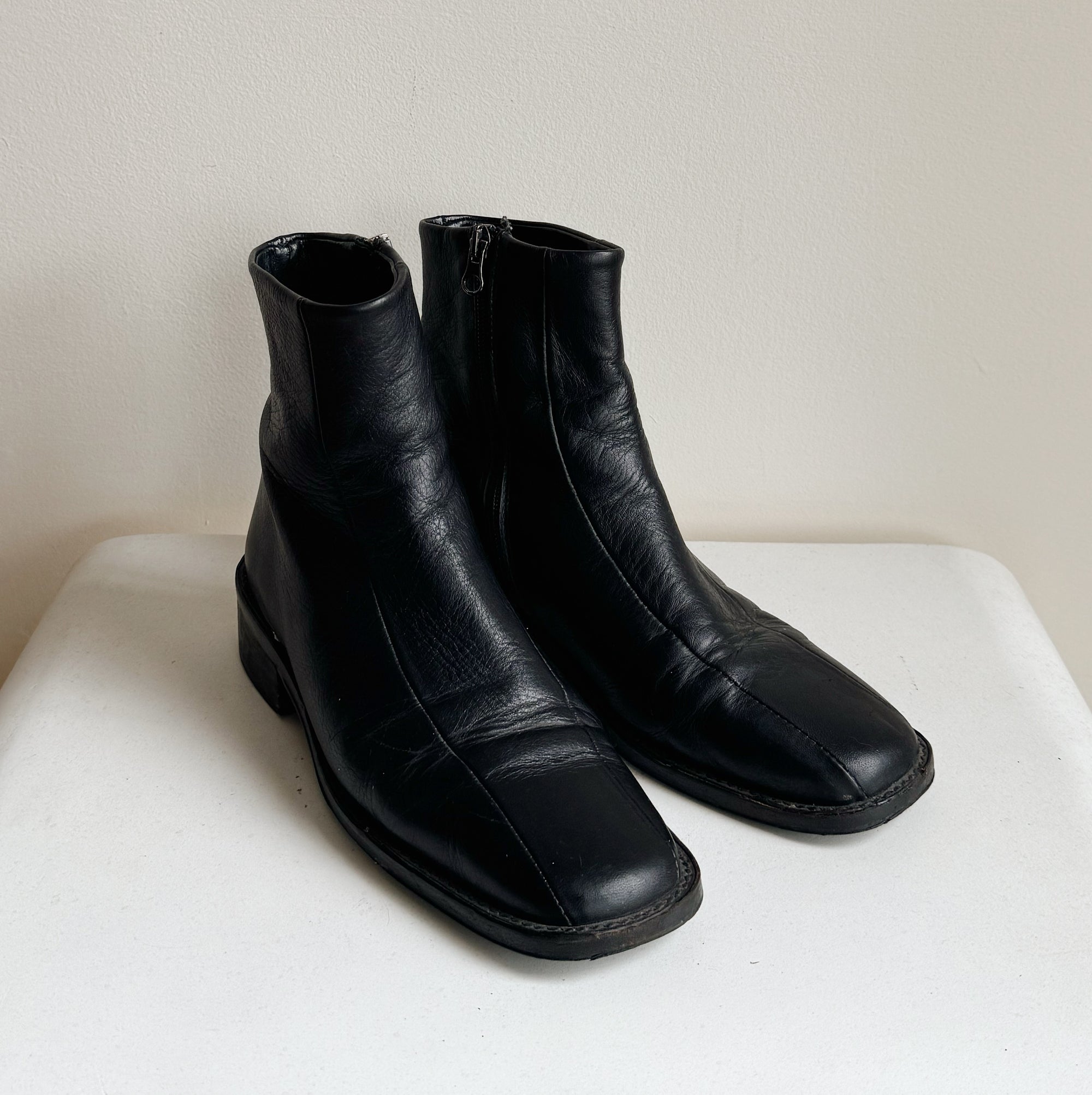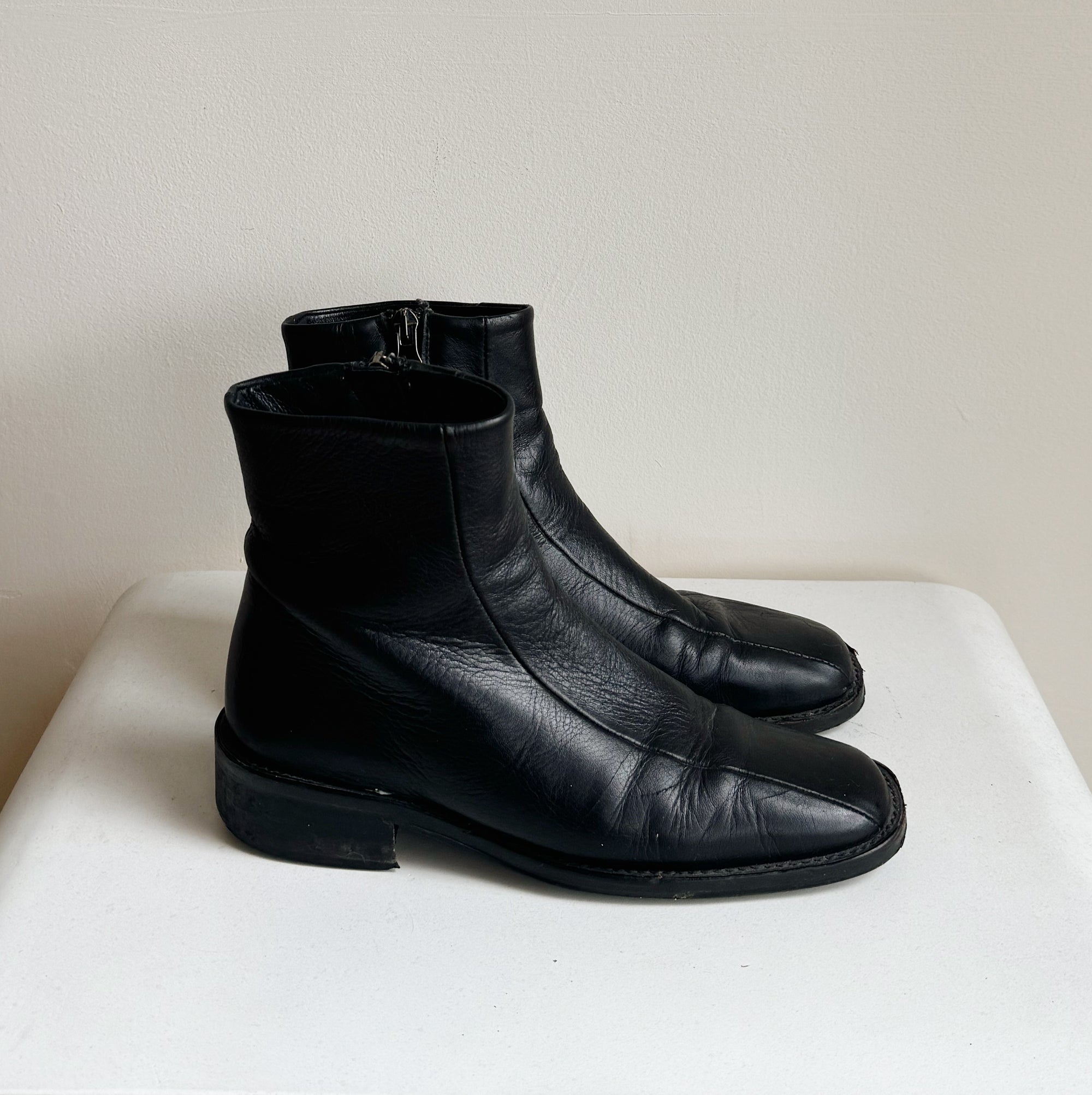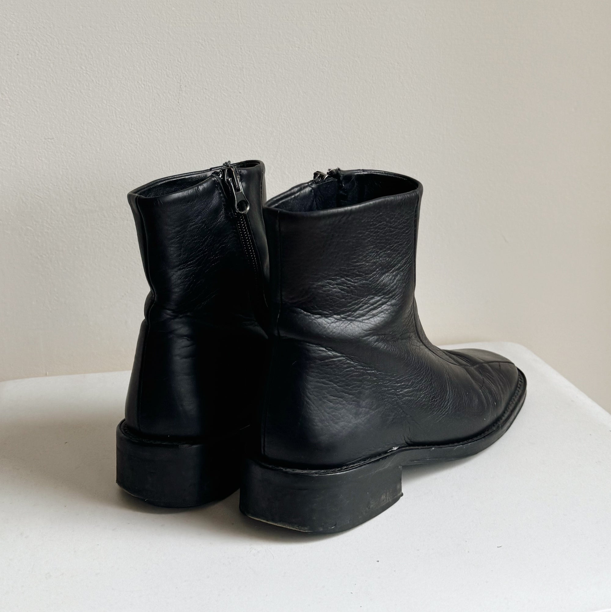 Ink Flat Leather Ankle Boots | Size 36
