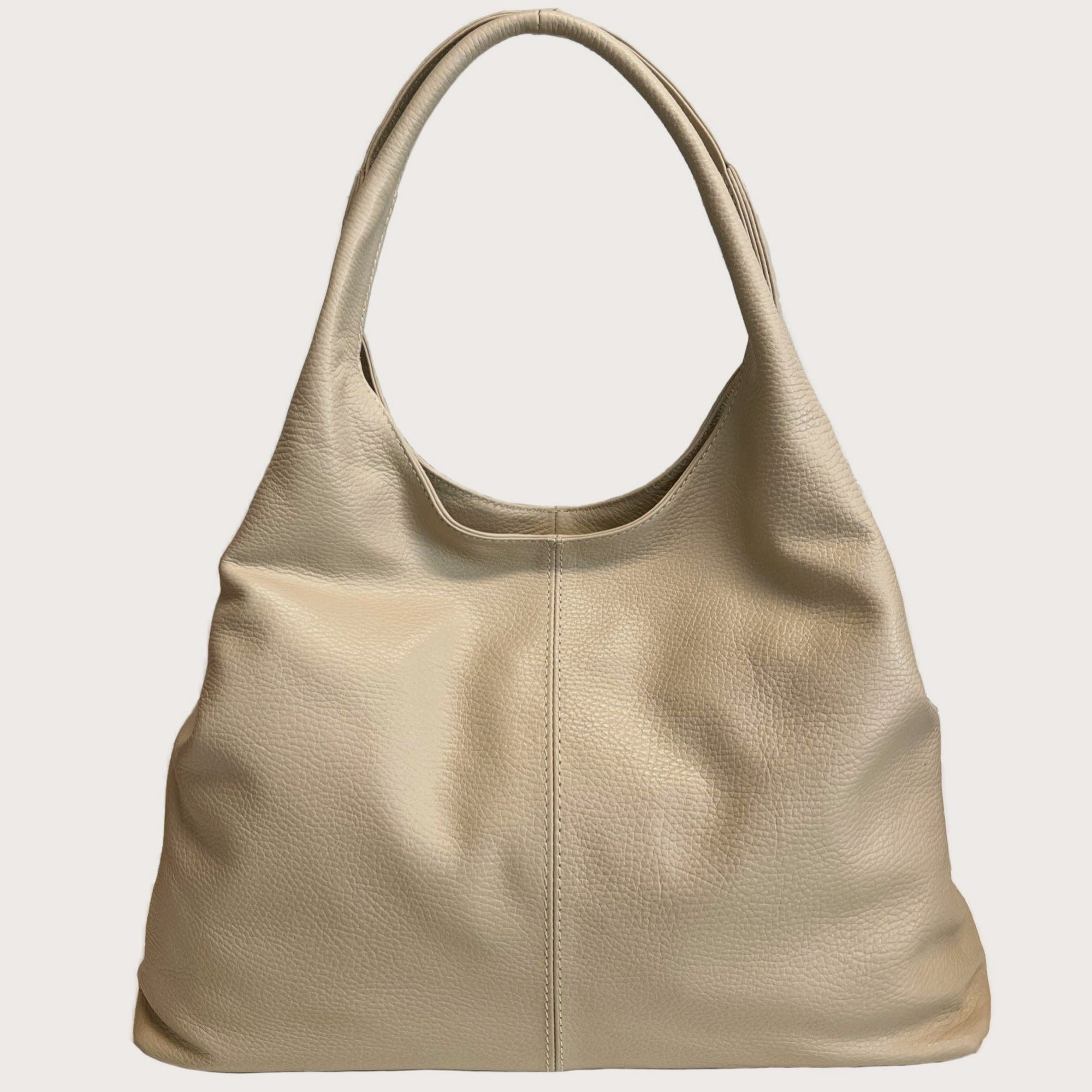 Cream Curved Italian Leather Shoulder Bag