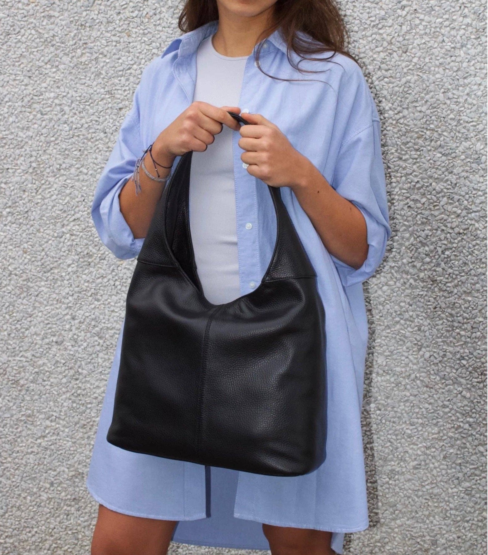 Suede Leather Hobo Bag in Black