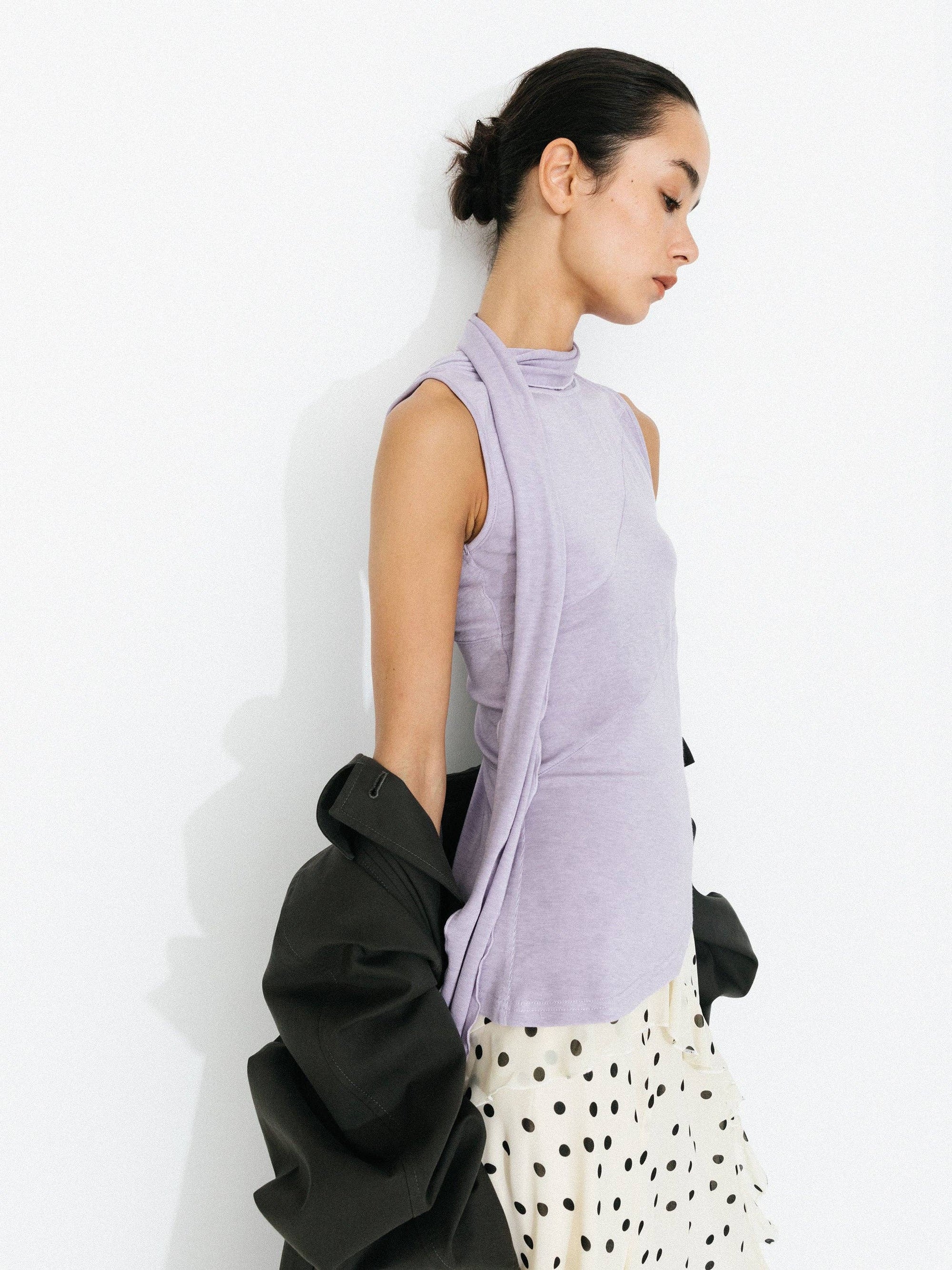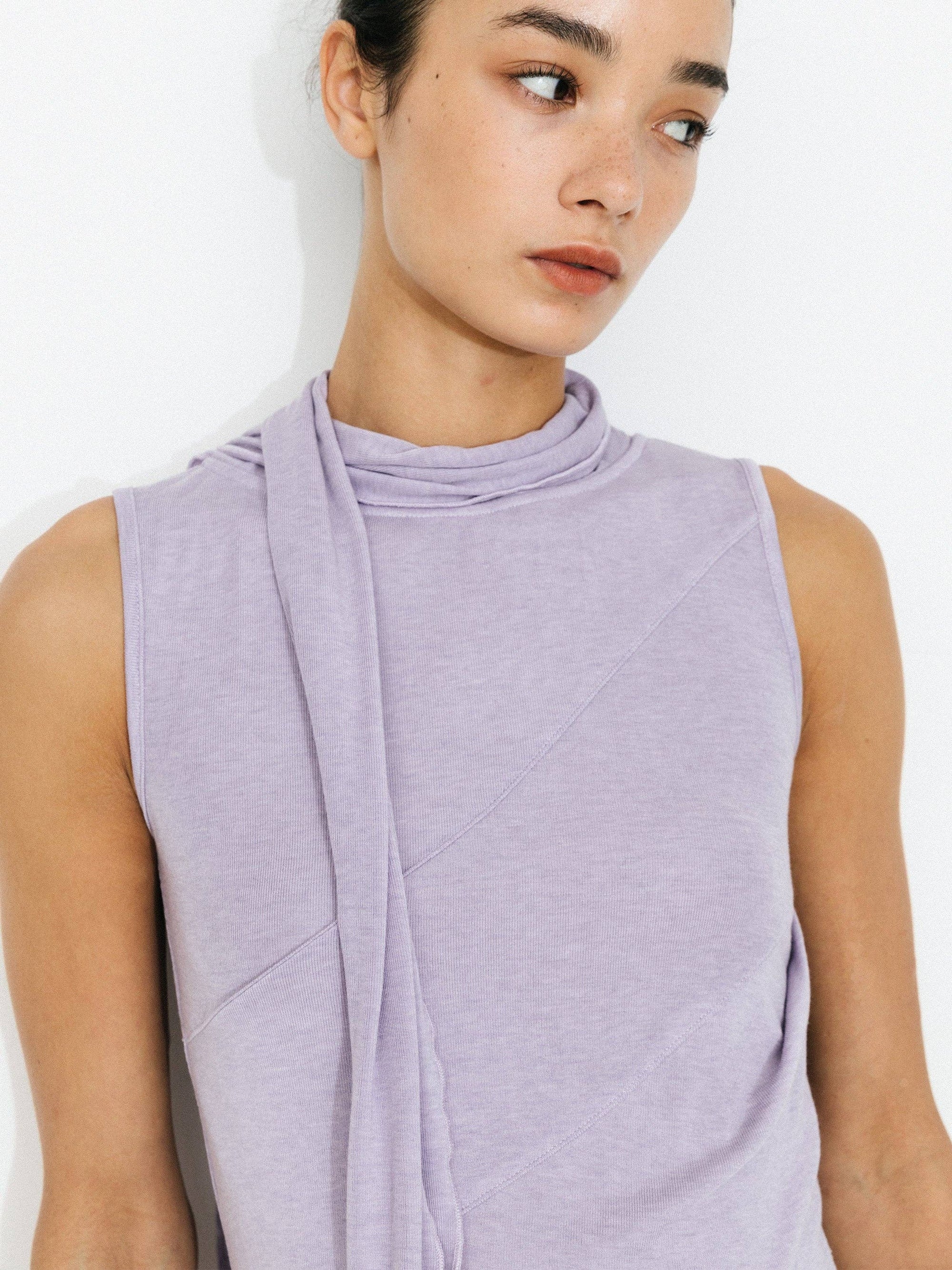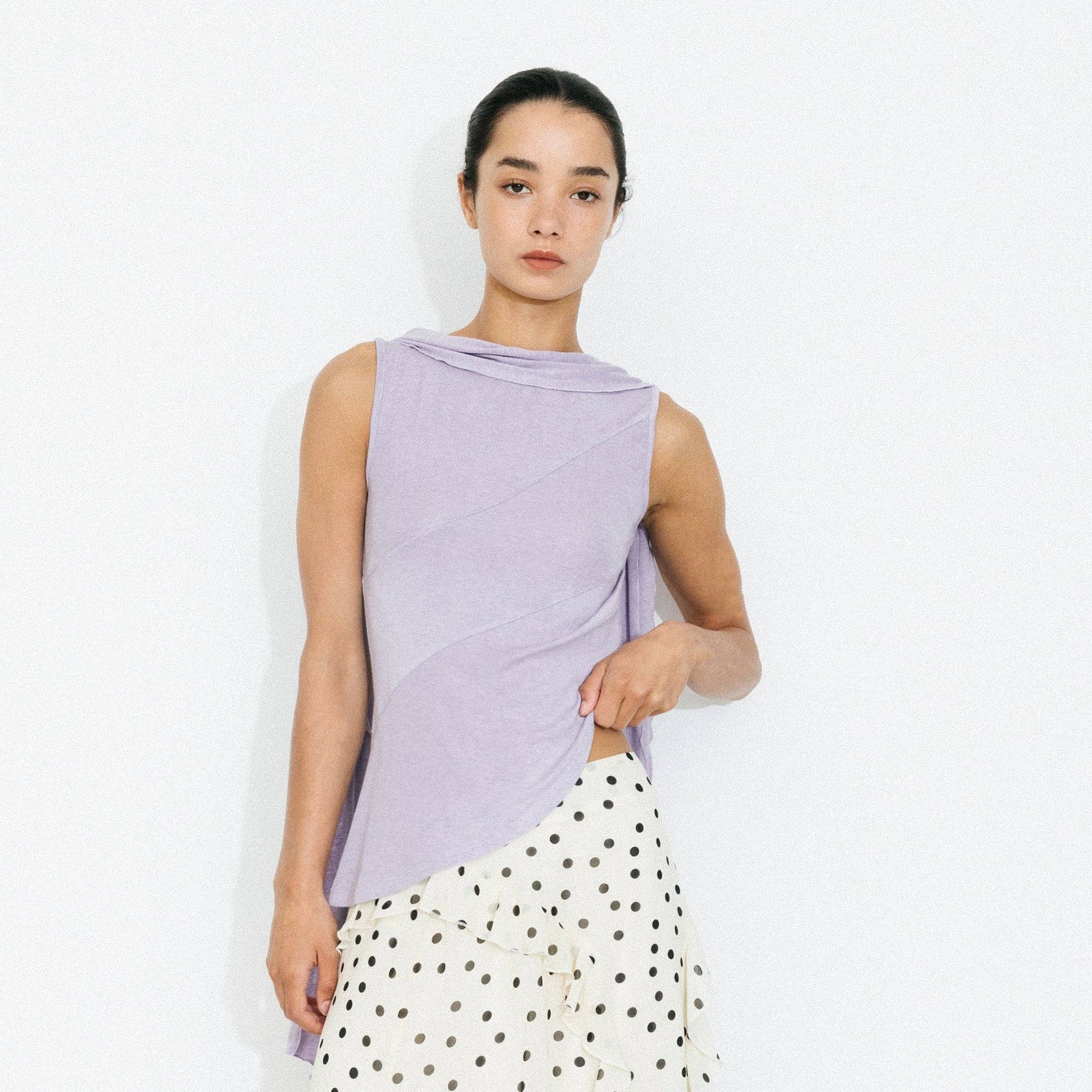 Cubic | Asymmetrical Sleeveless Tie-Neck Top in Lavender