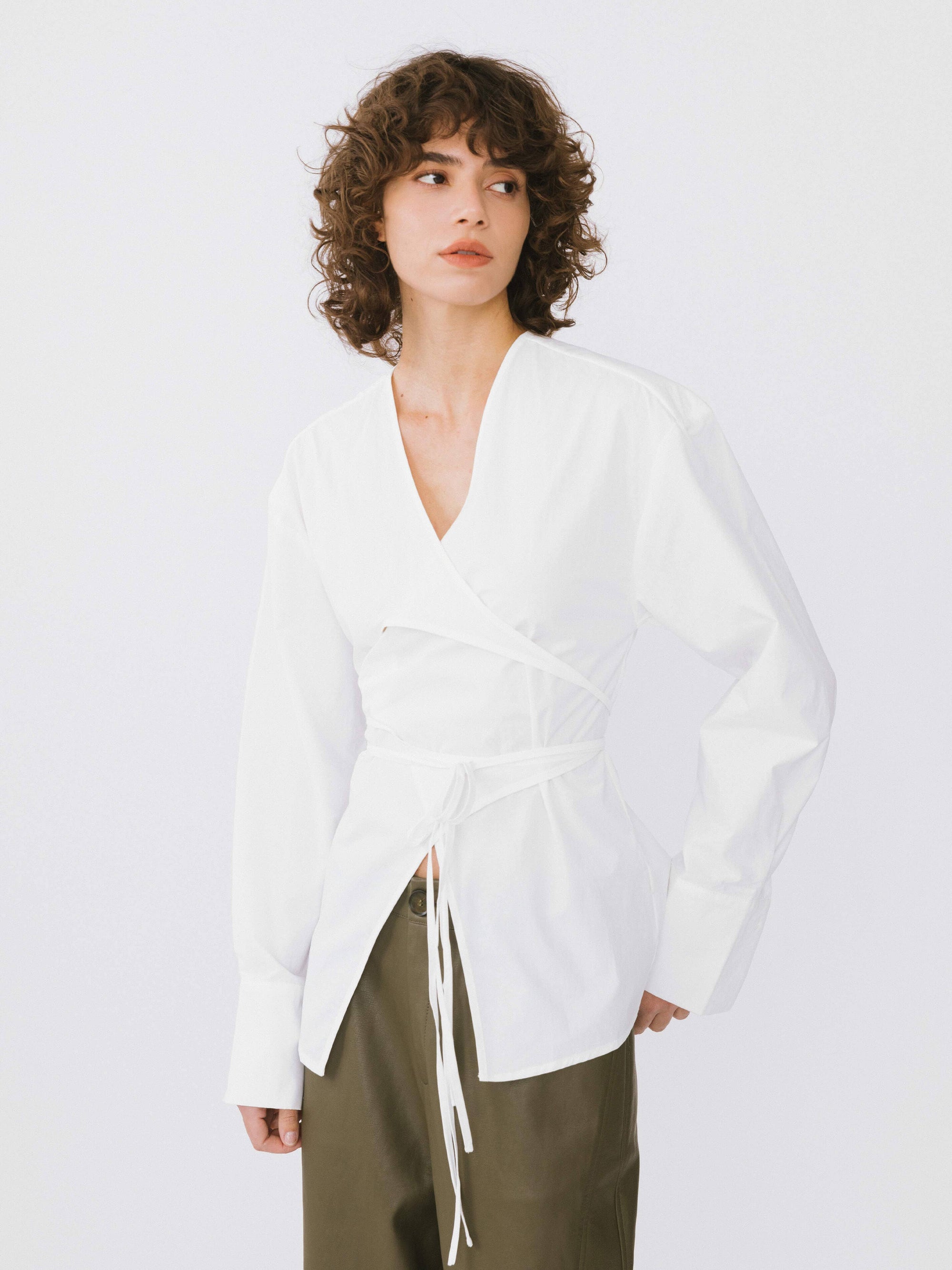 Cubic | Criss-Crossed Cotton Layered Blouse in White