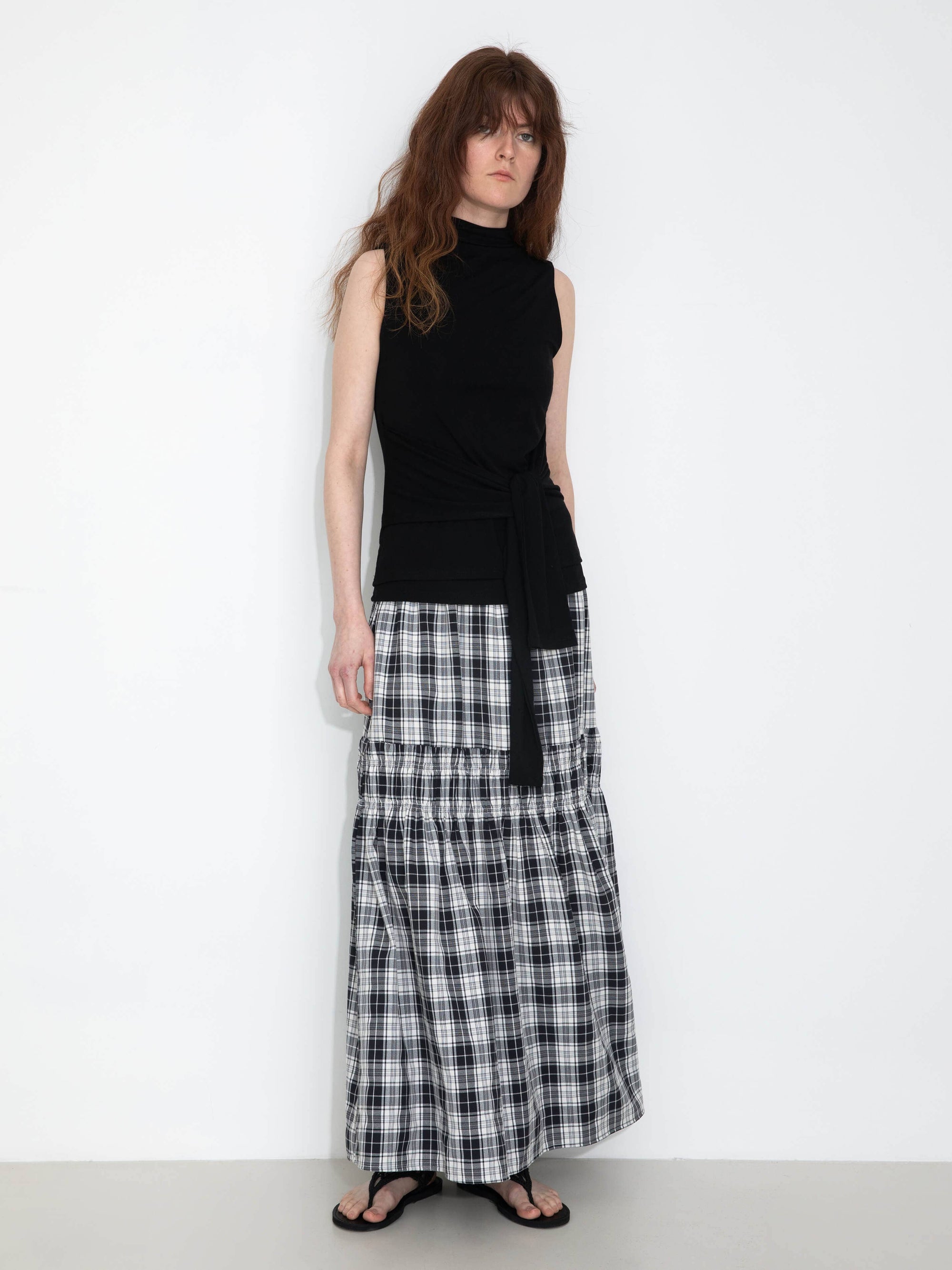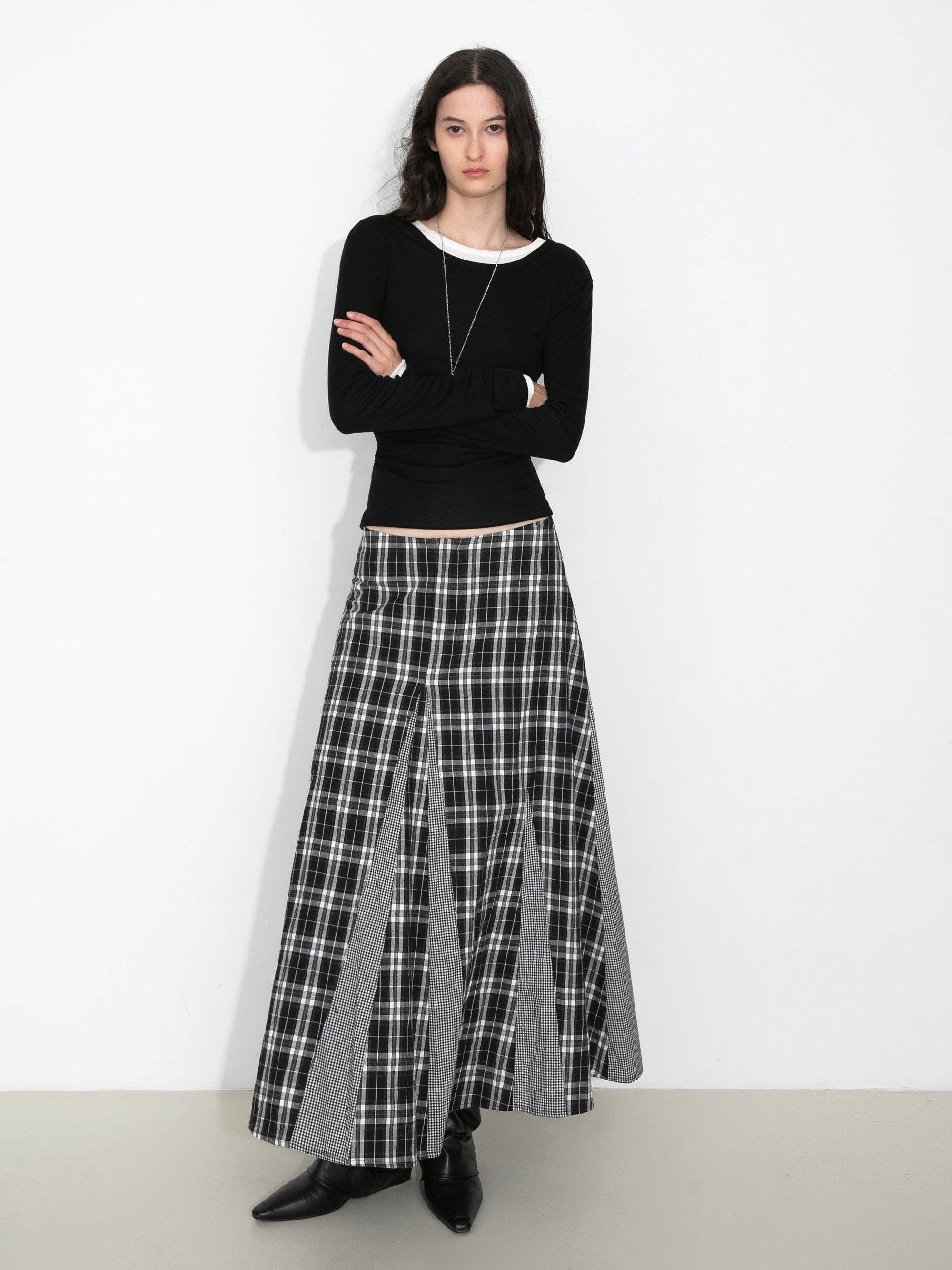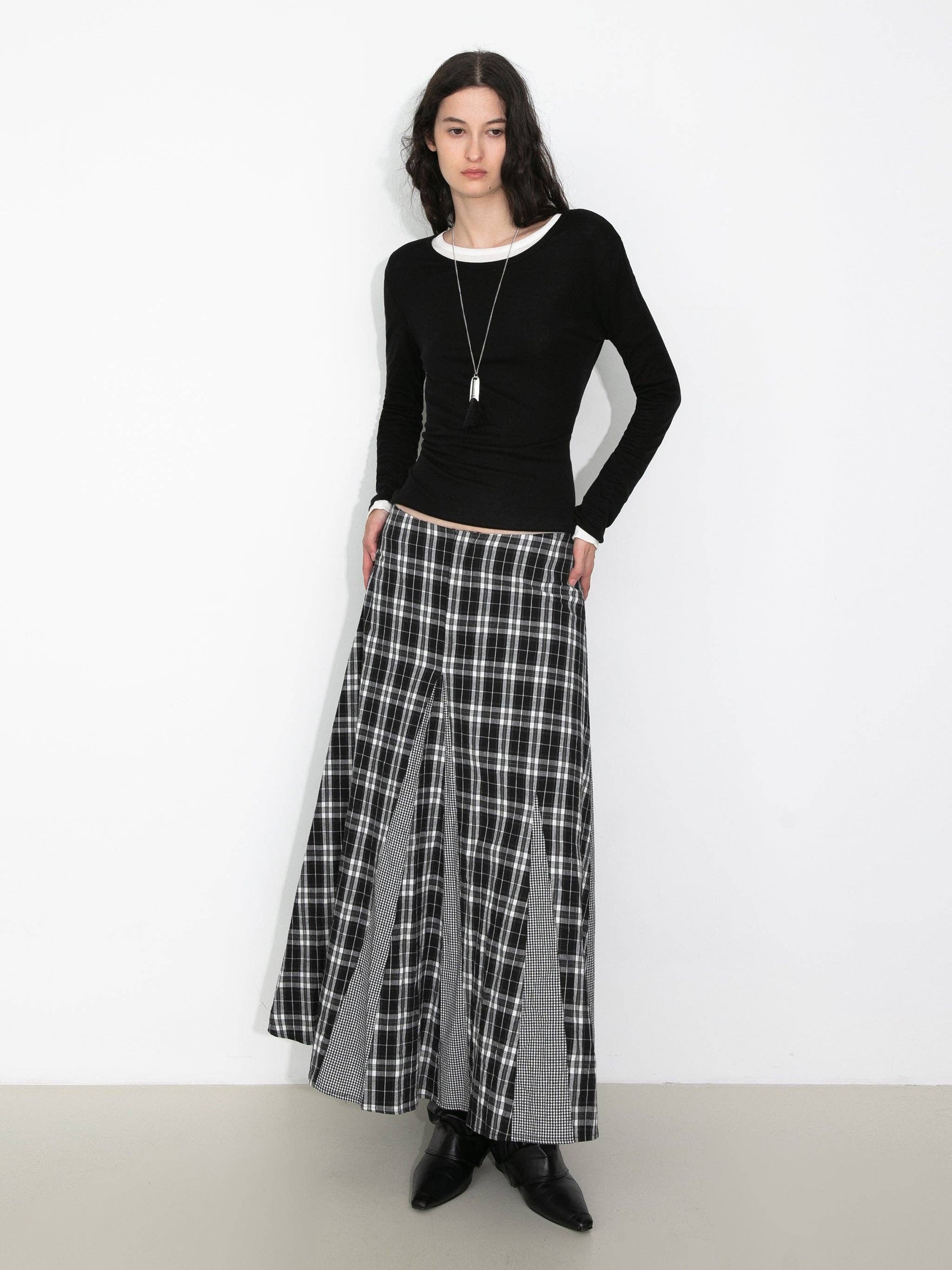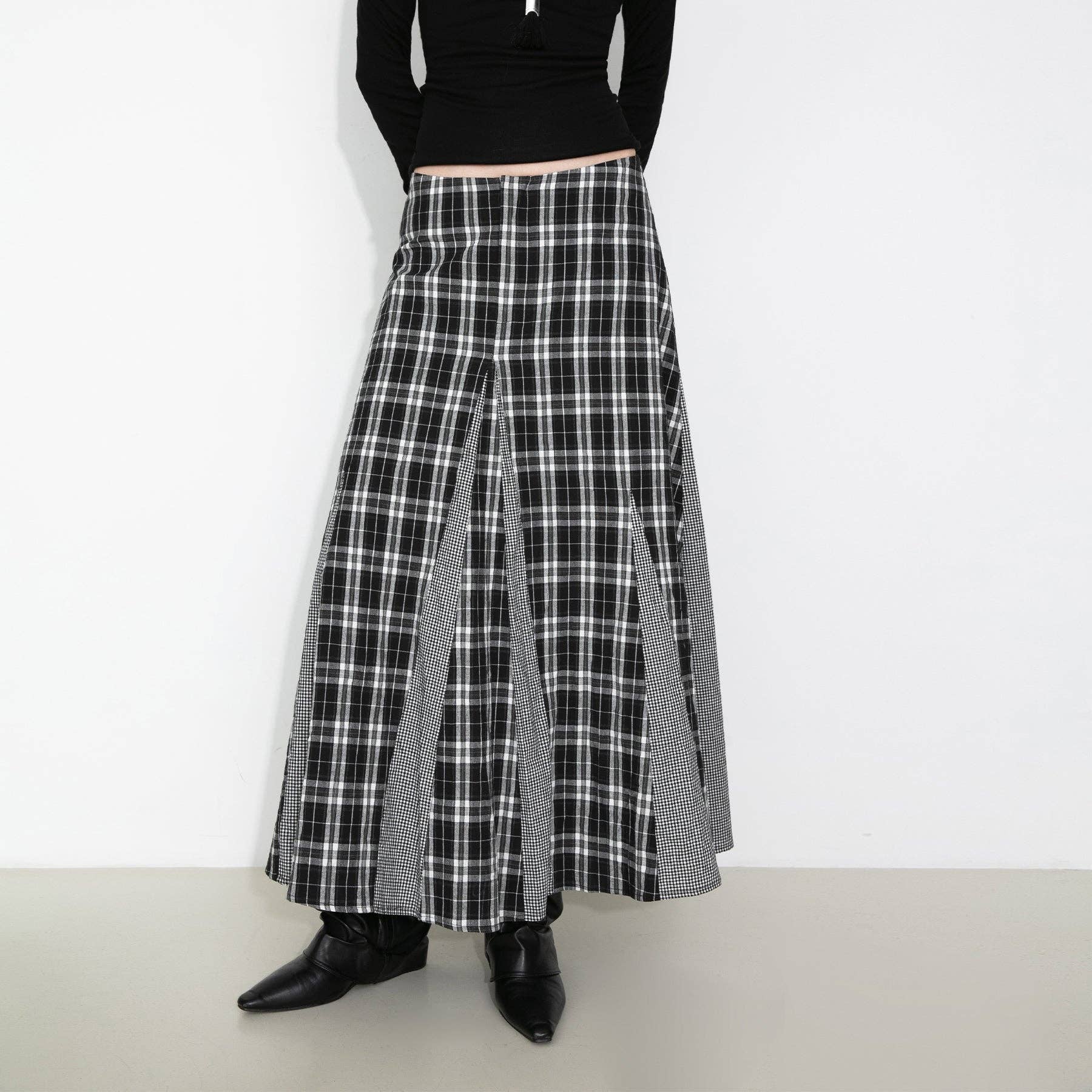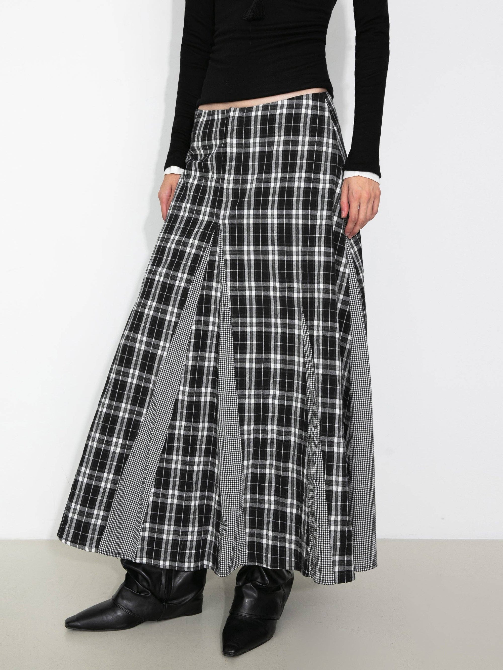 Cubic | Cotton Patchwork Check A-Line Maxi Skirt