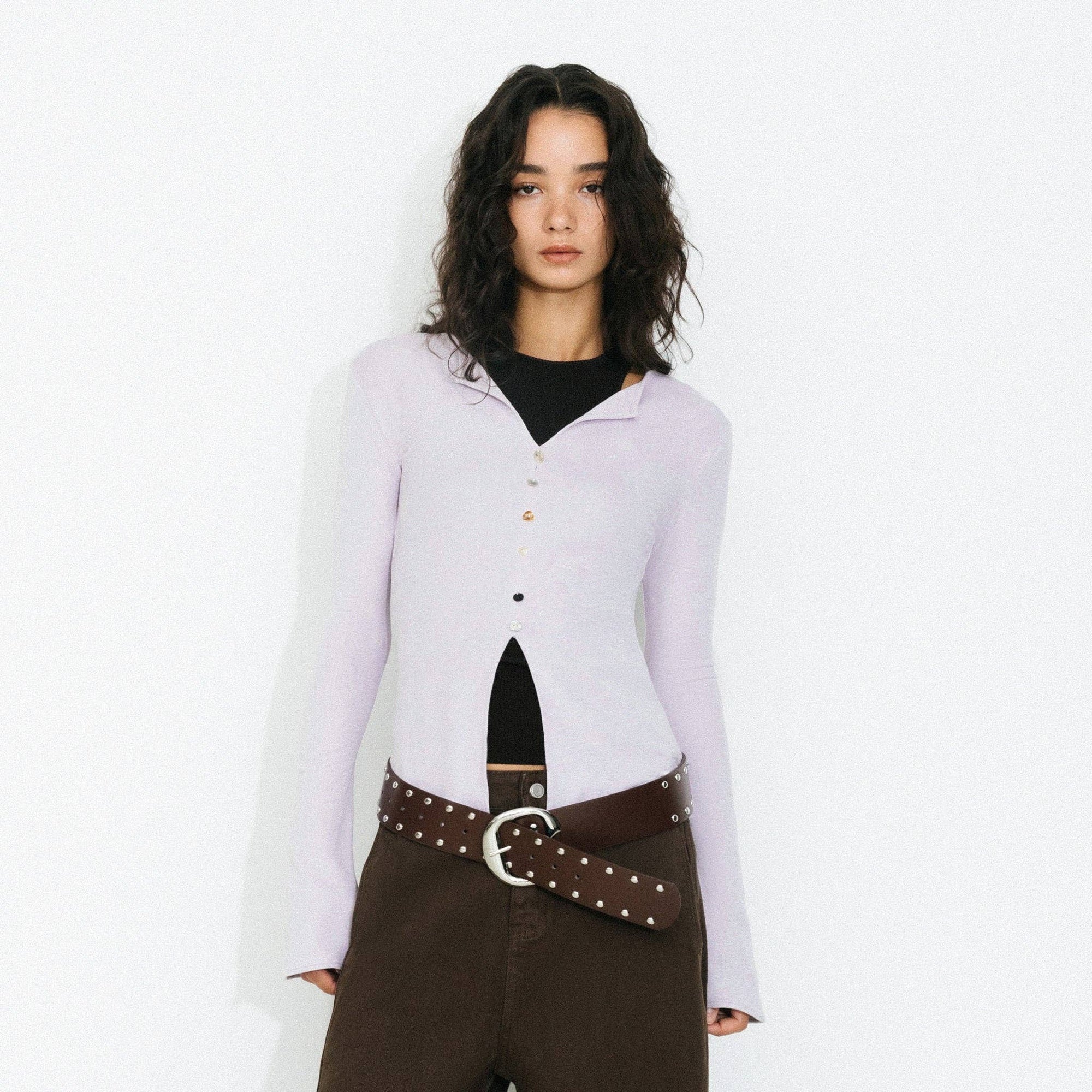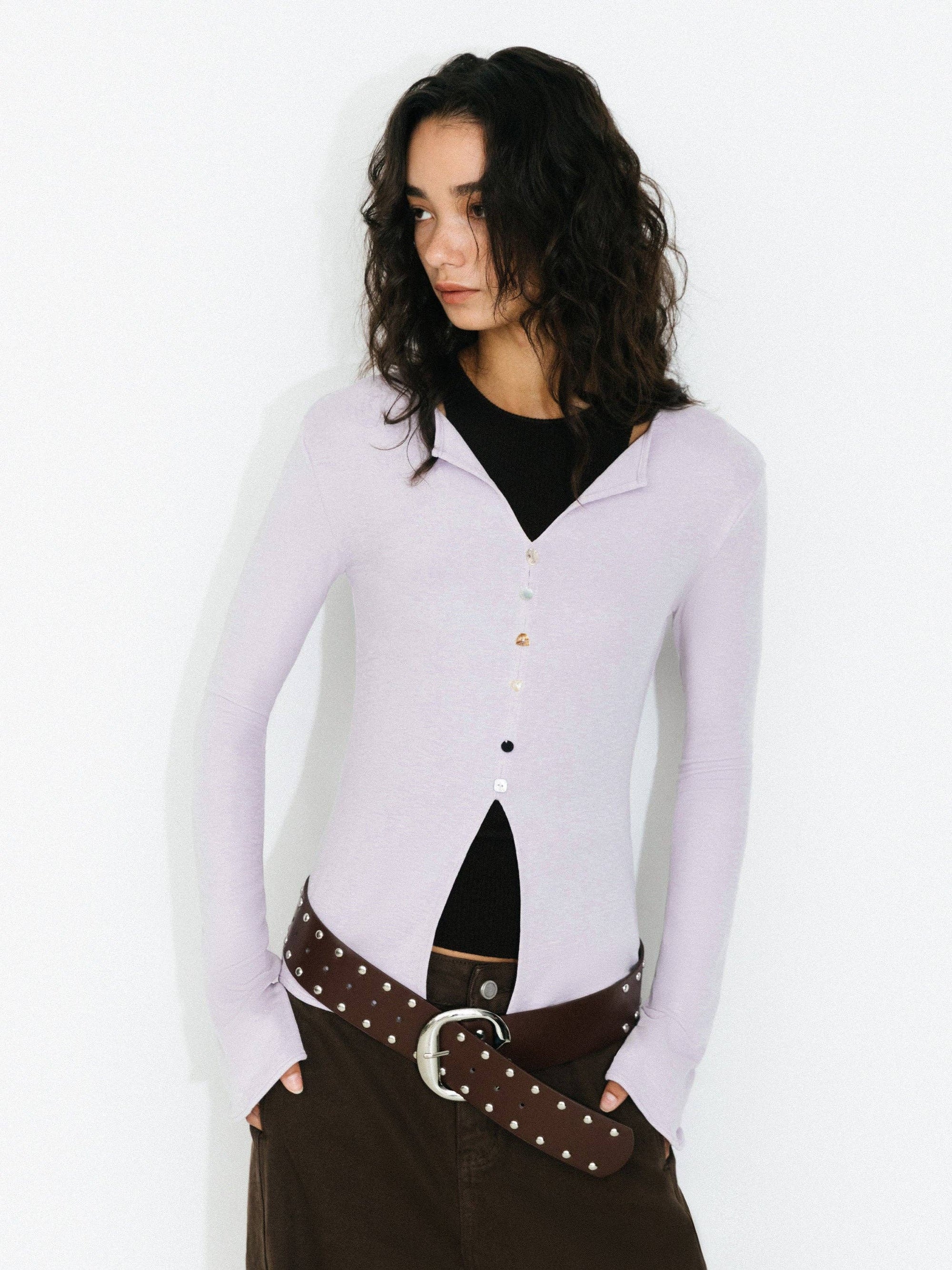 Cubic | V-Neck Slim-Fit Knit Top in Lilac
