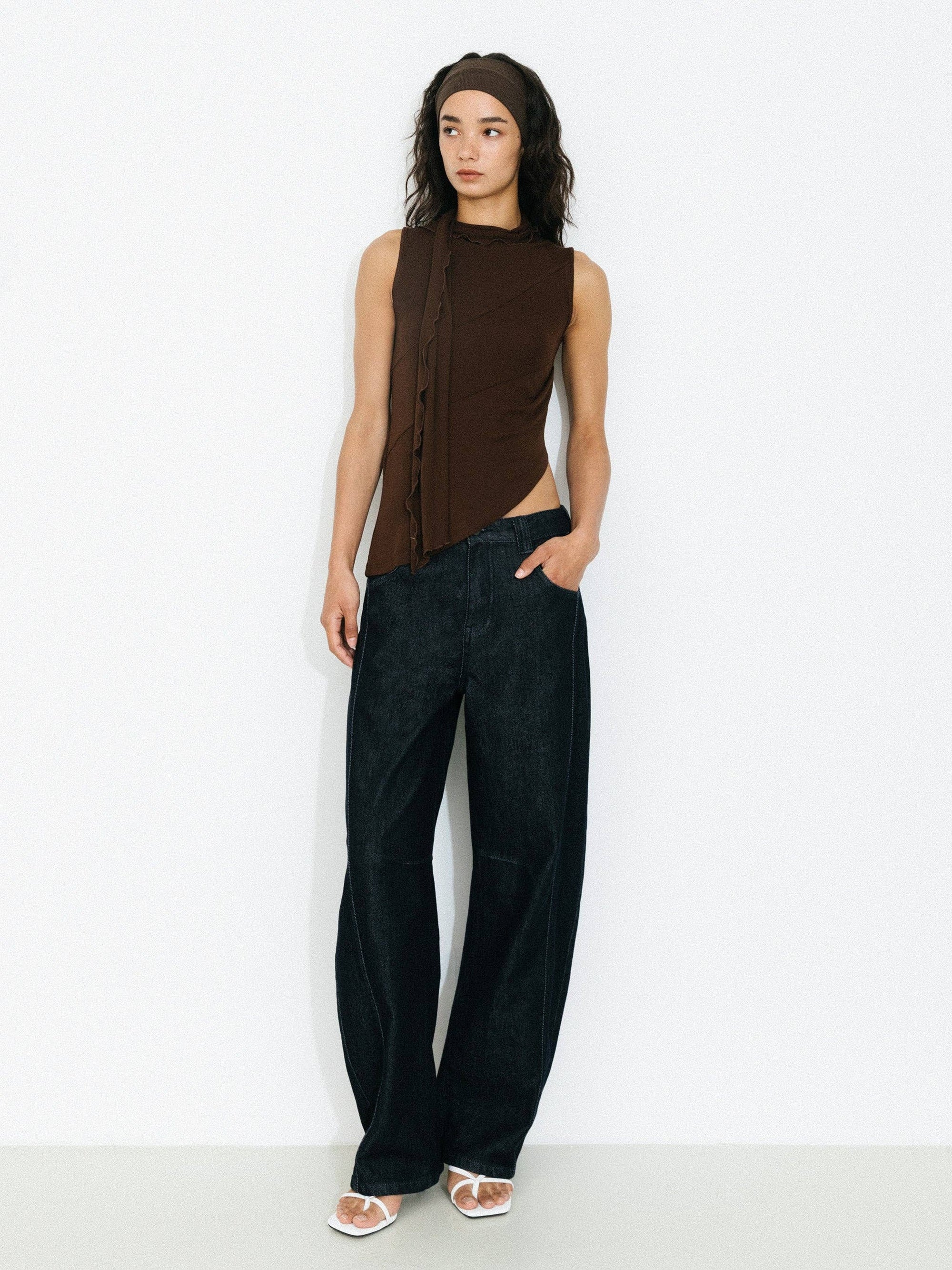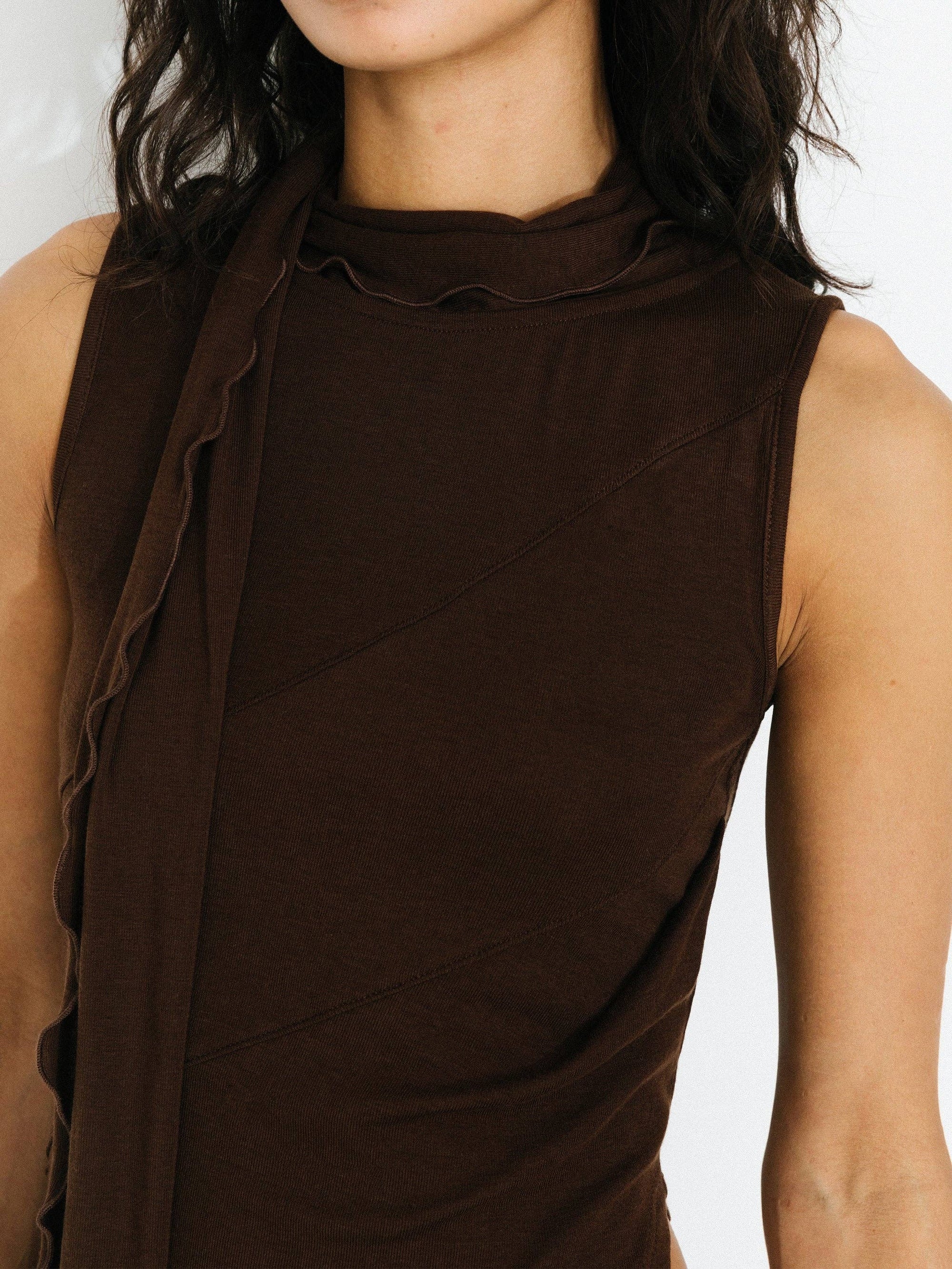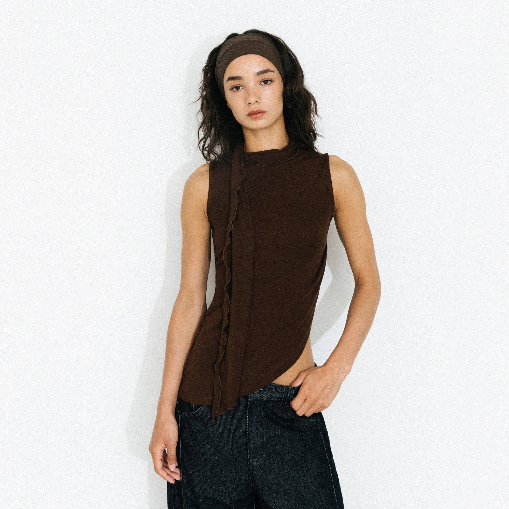 Cubic | Asymmetrical Sleeveless Tie-Neck Top in Espresso