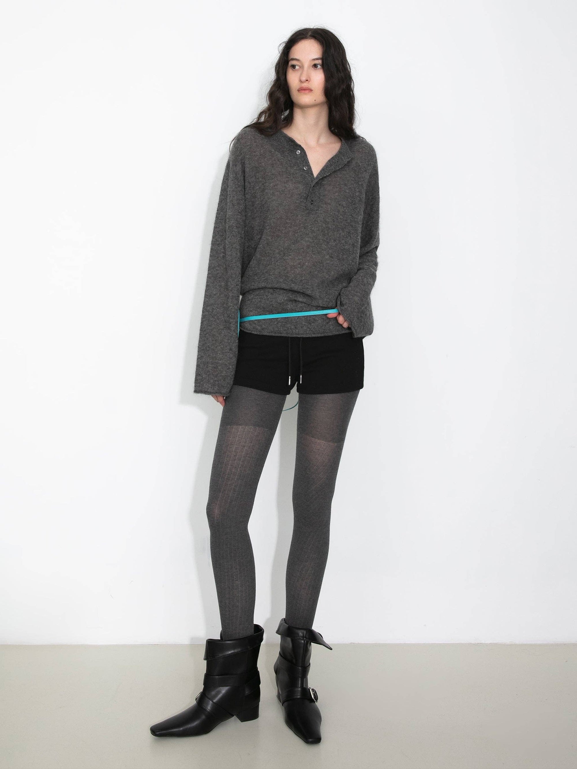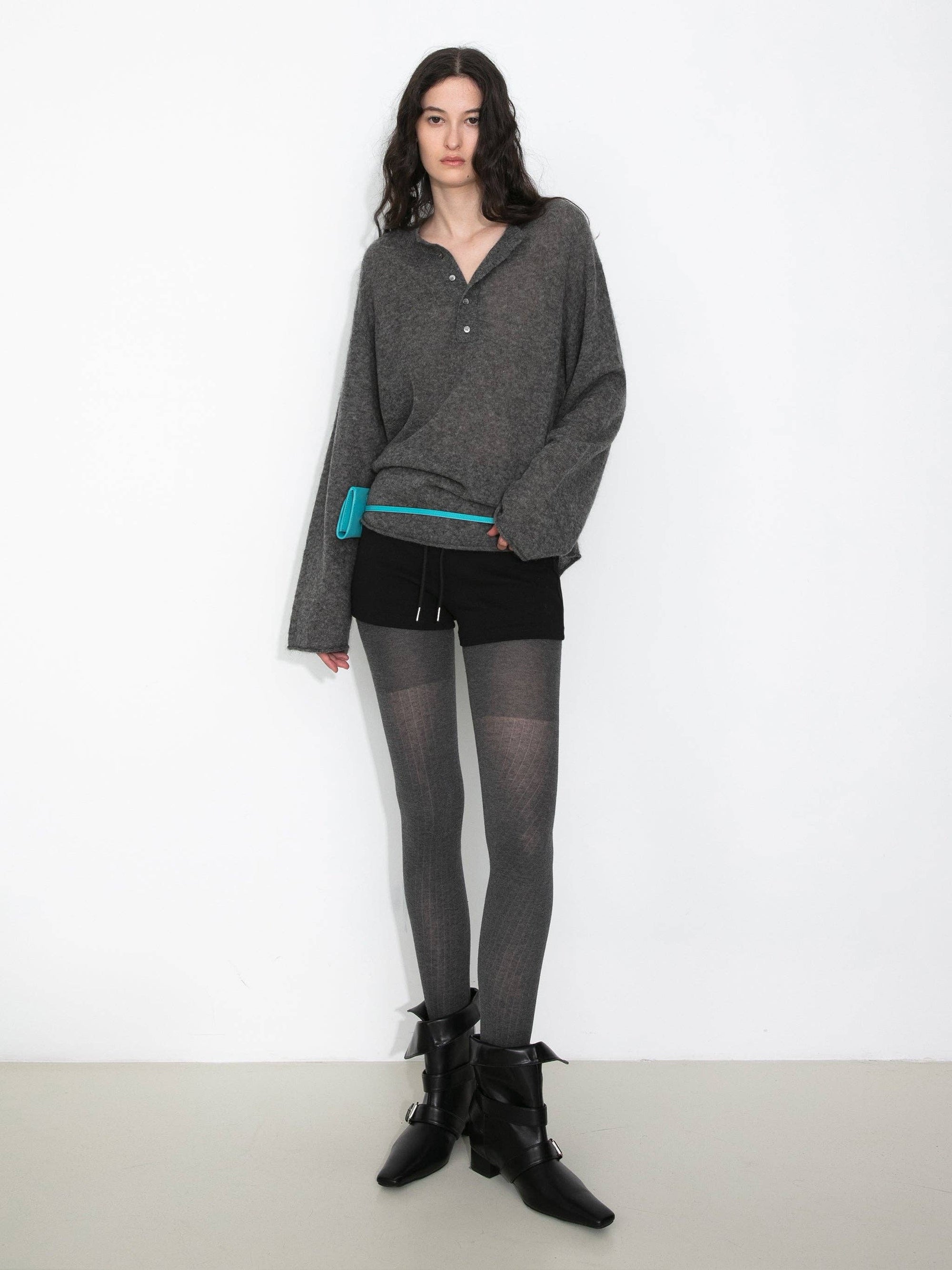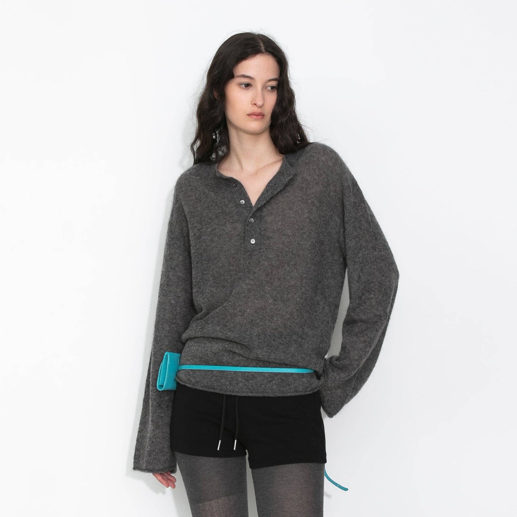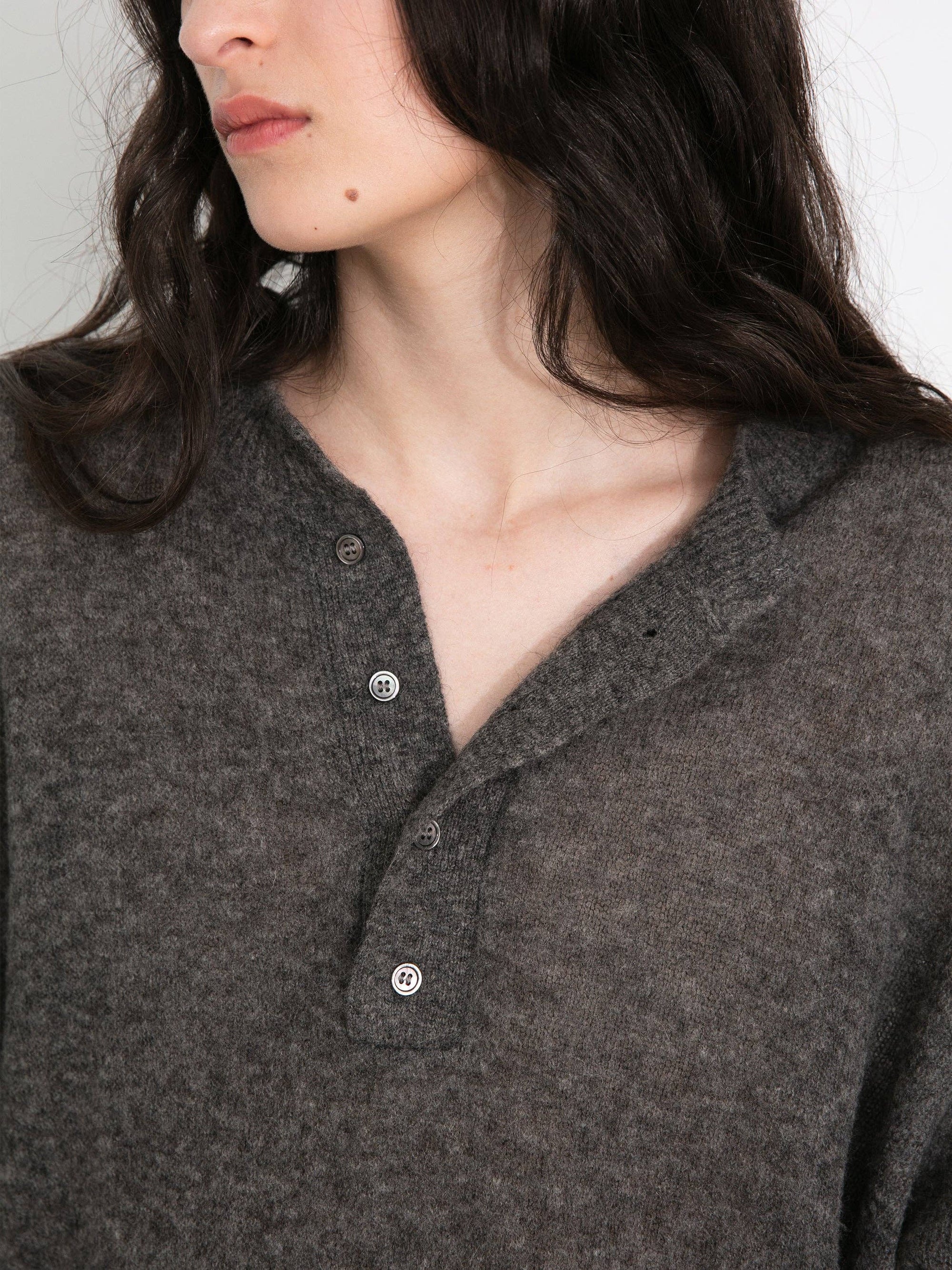 Cubic | Wool Relaxed Long Sleeve Henley in Smoke