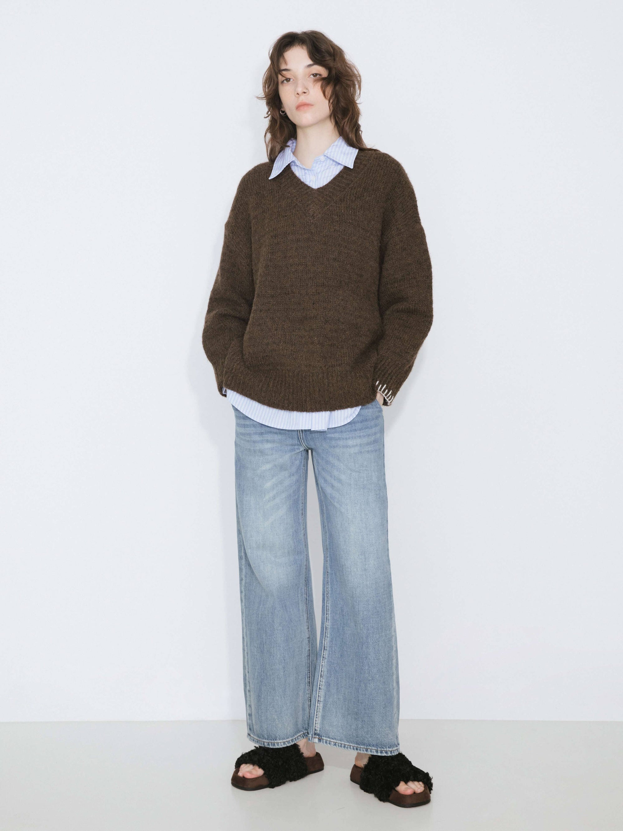 CUBIC | Alpaca Knit V-Neck Jumper in Saddle Brown