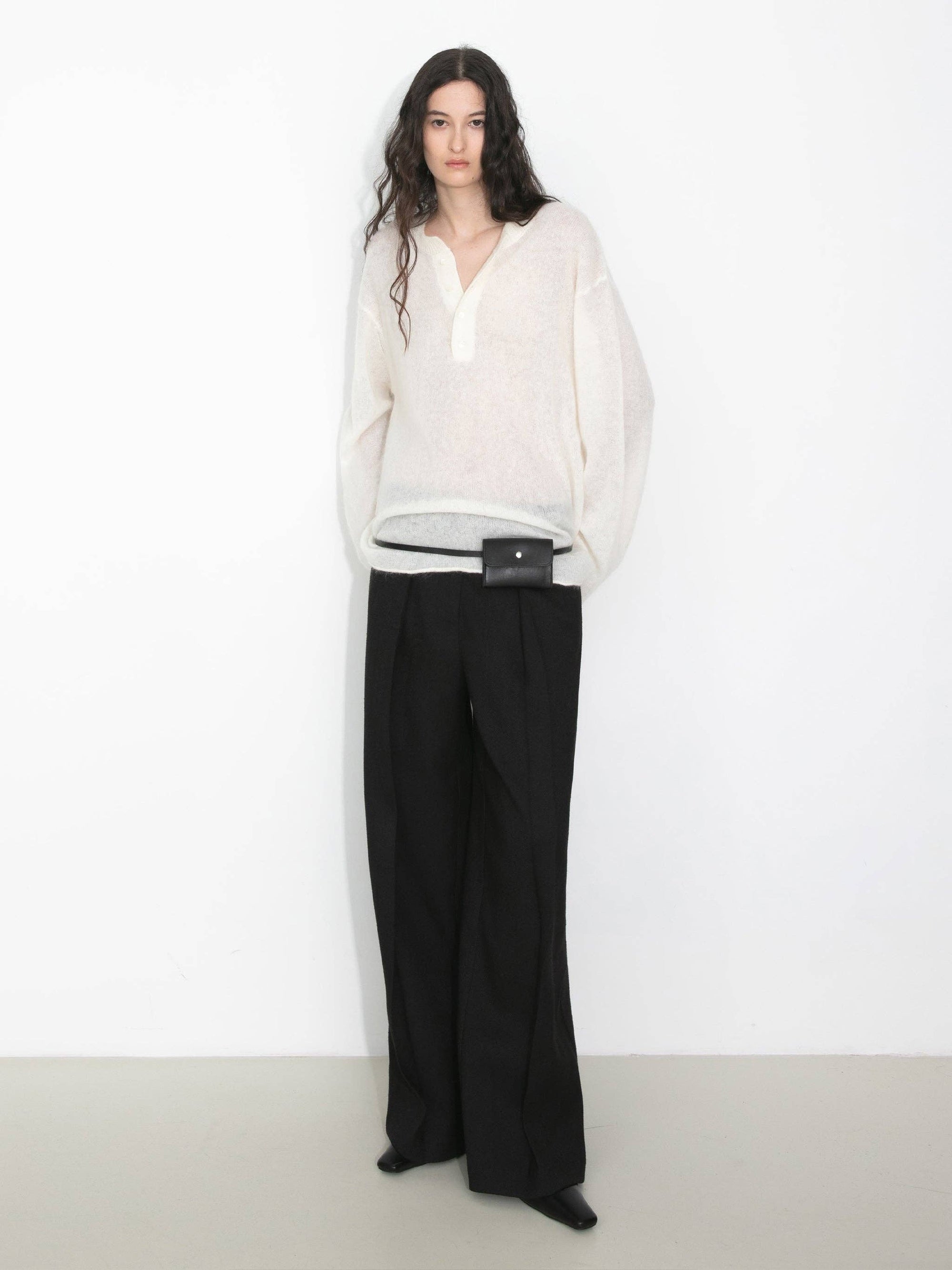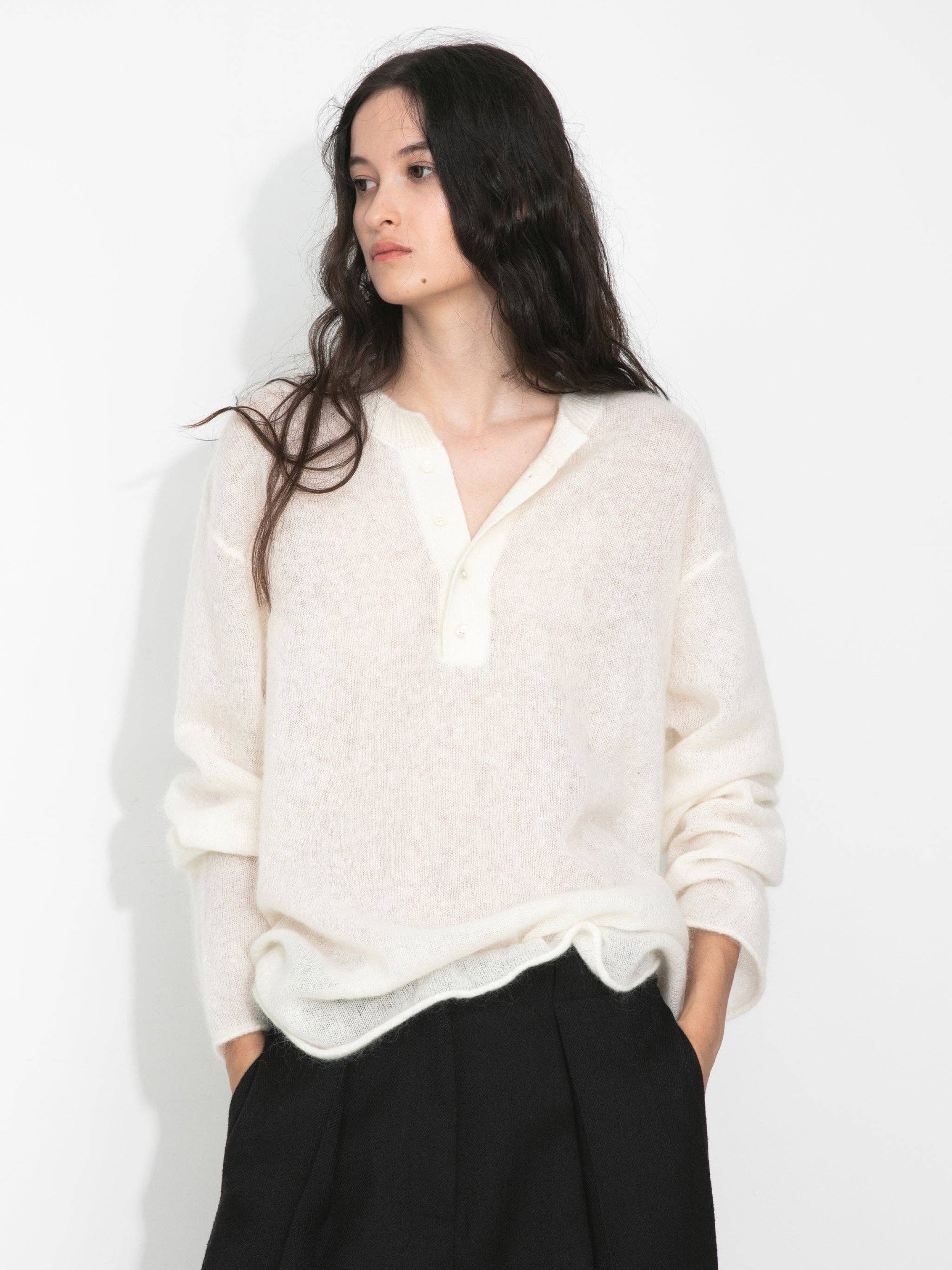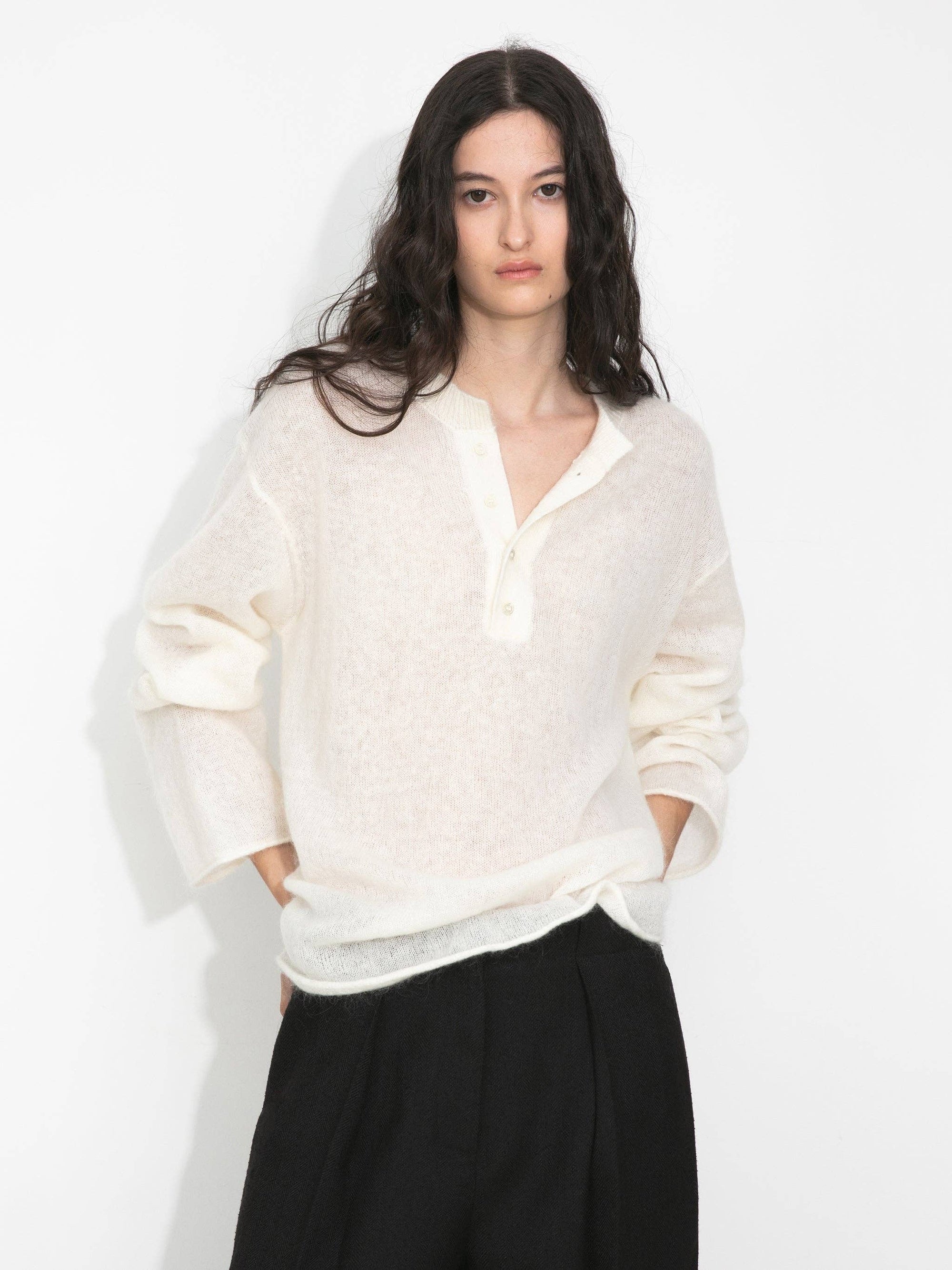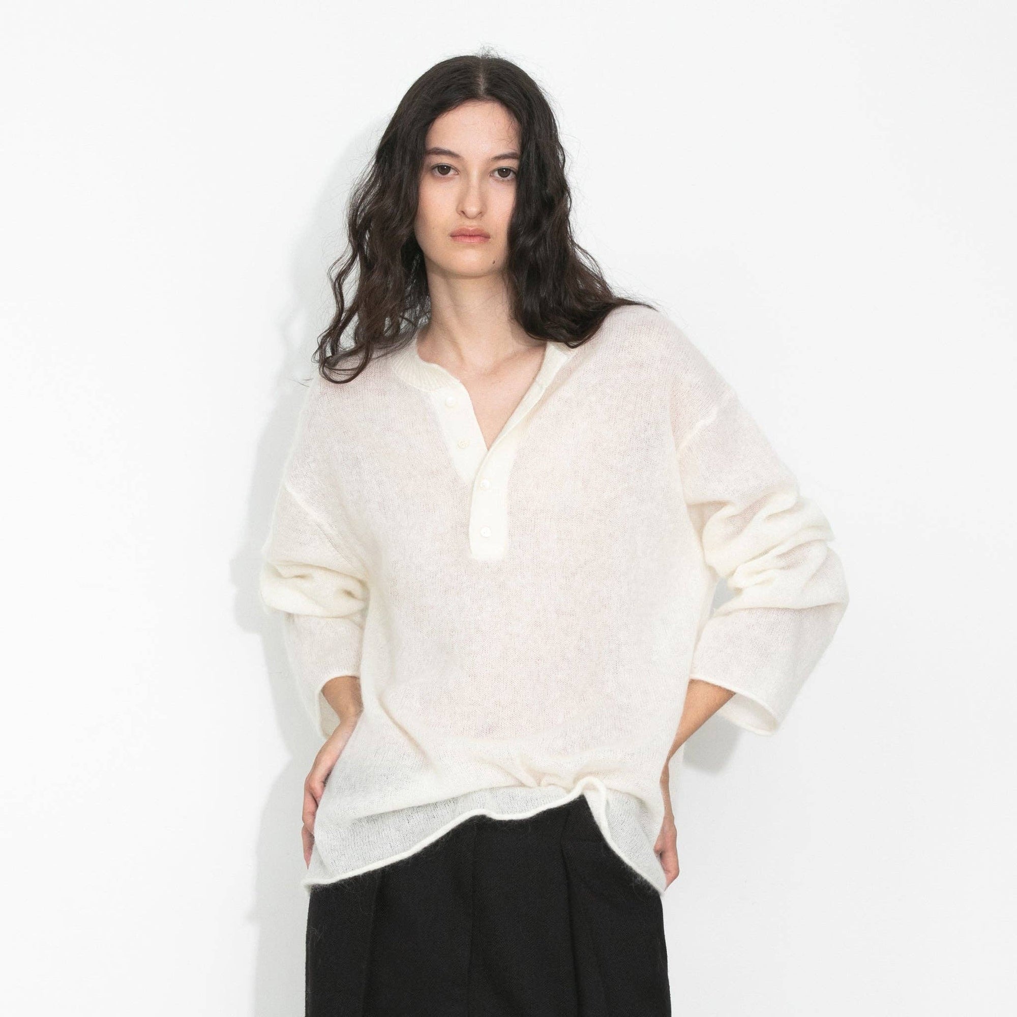 Cubic | Wool Relaxed Long Sleeve Henley in Snow