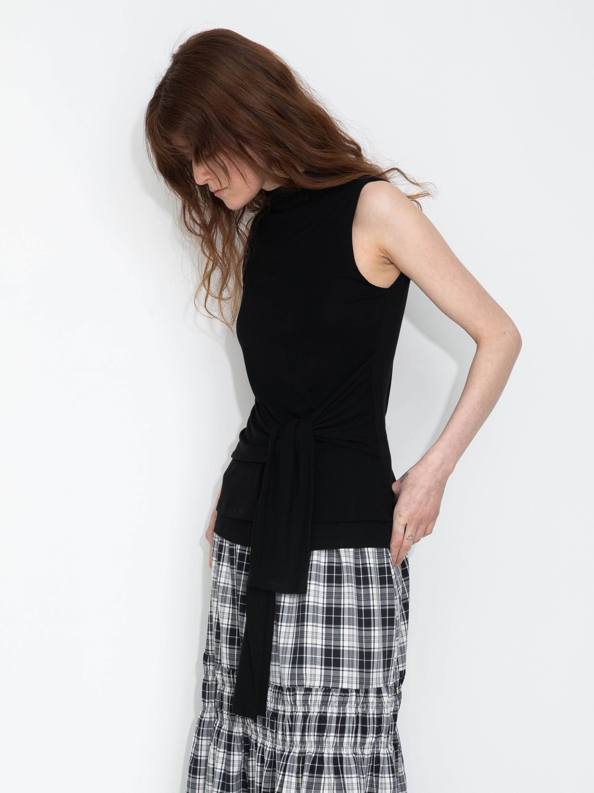 Cubic | Modal Sleeveless Tie Mock Neck Top in Black