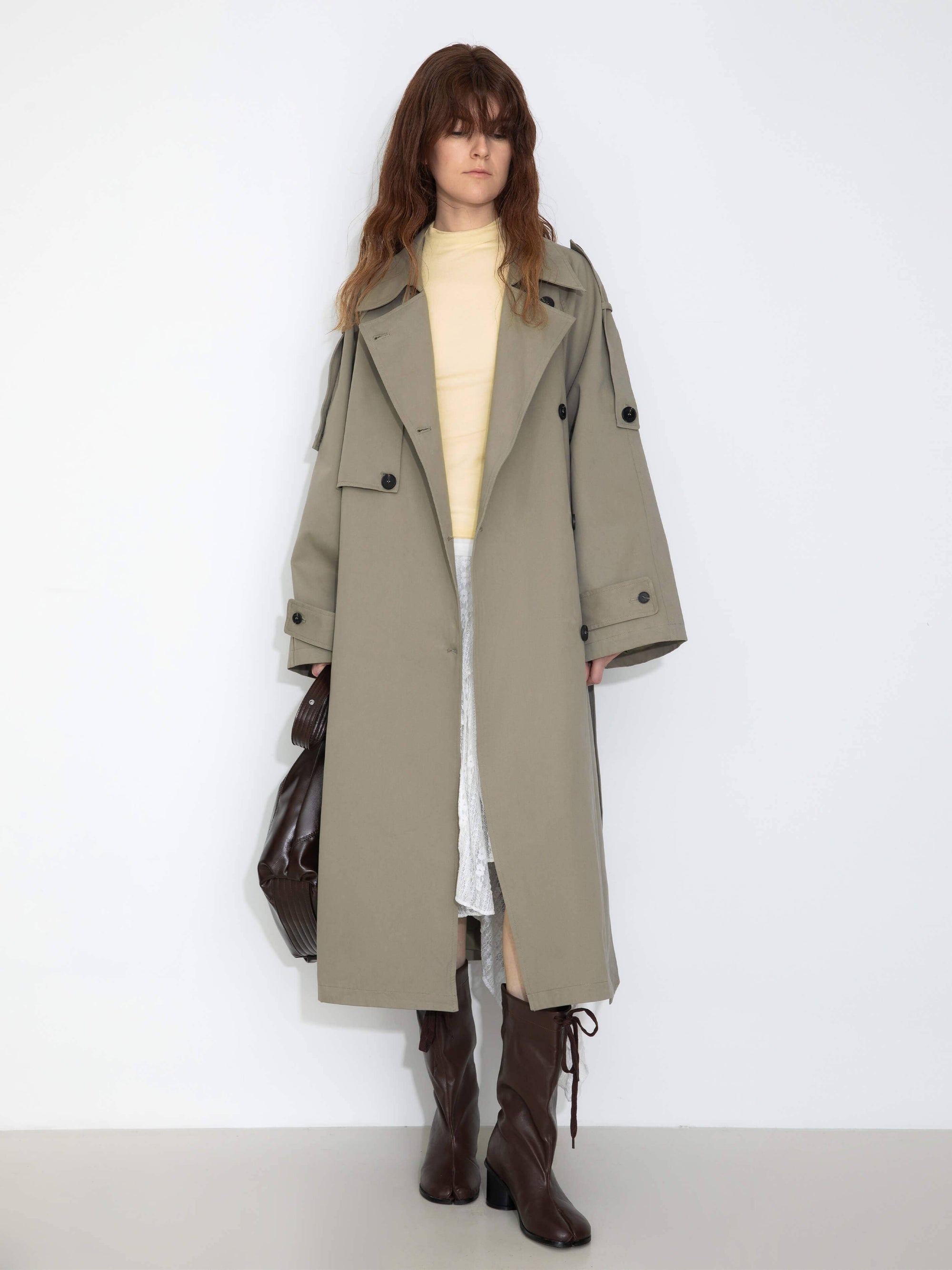 Cubic | Cotton Oversized Mid-Length Trench in Dark Sea Green