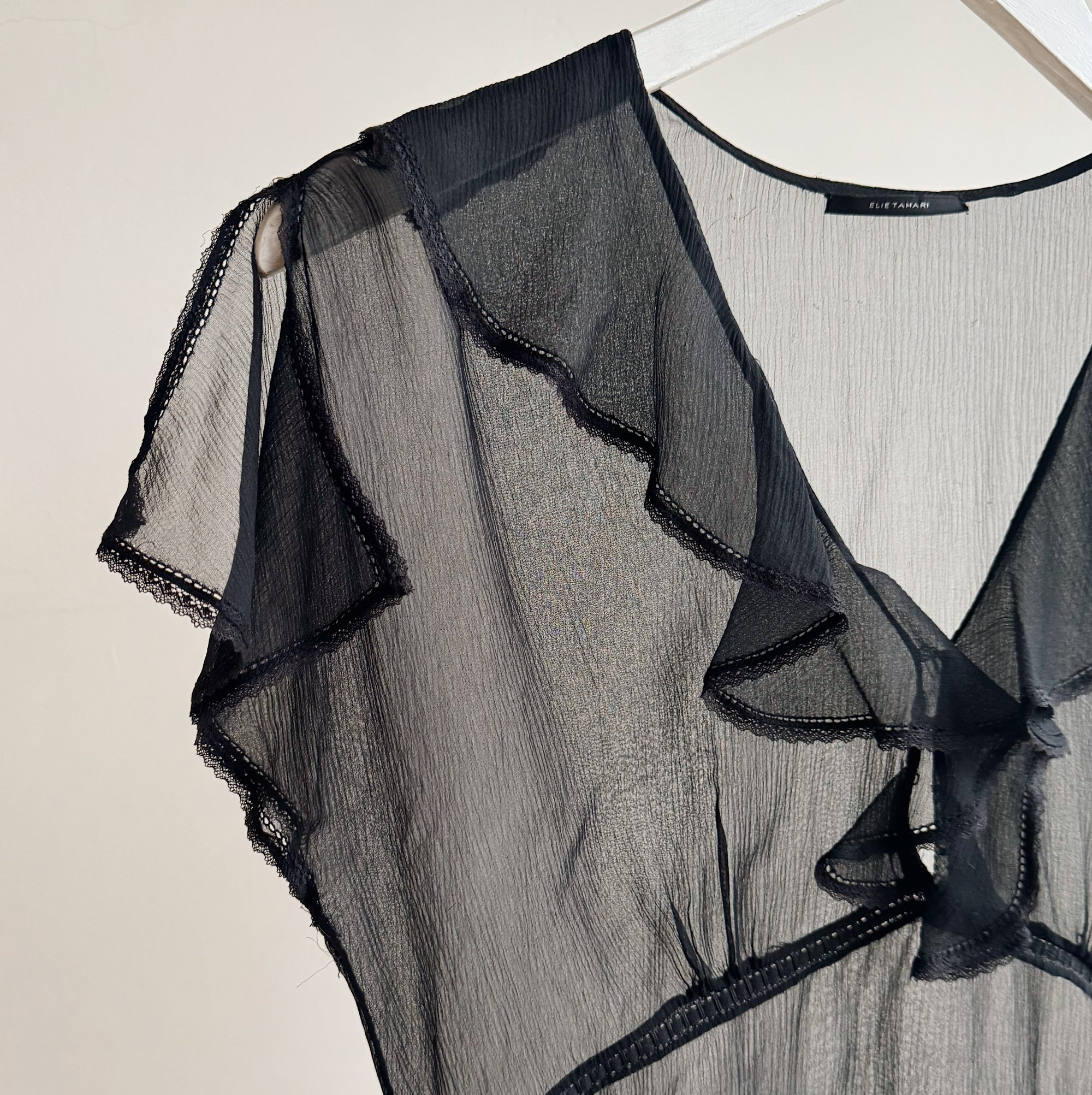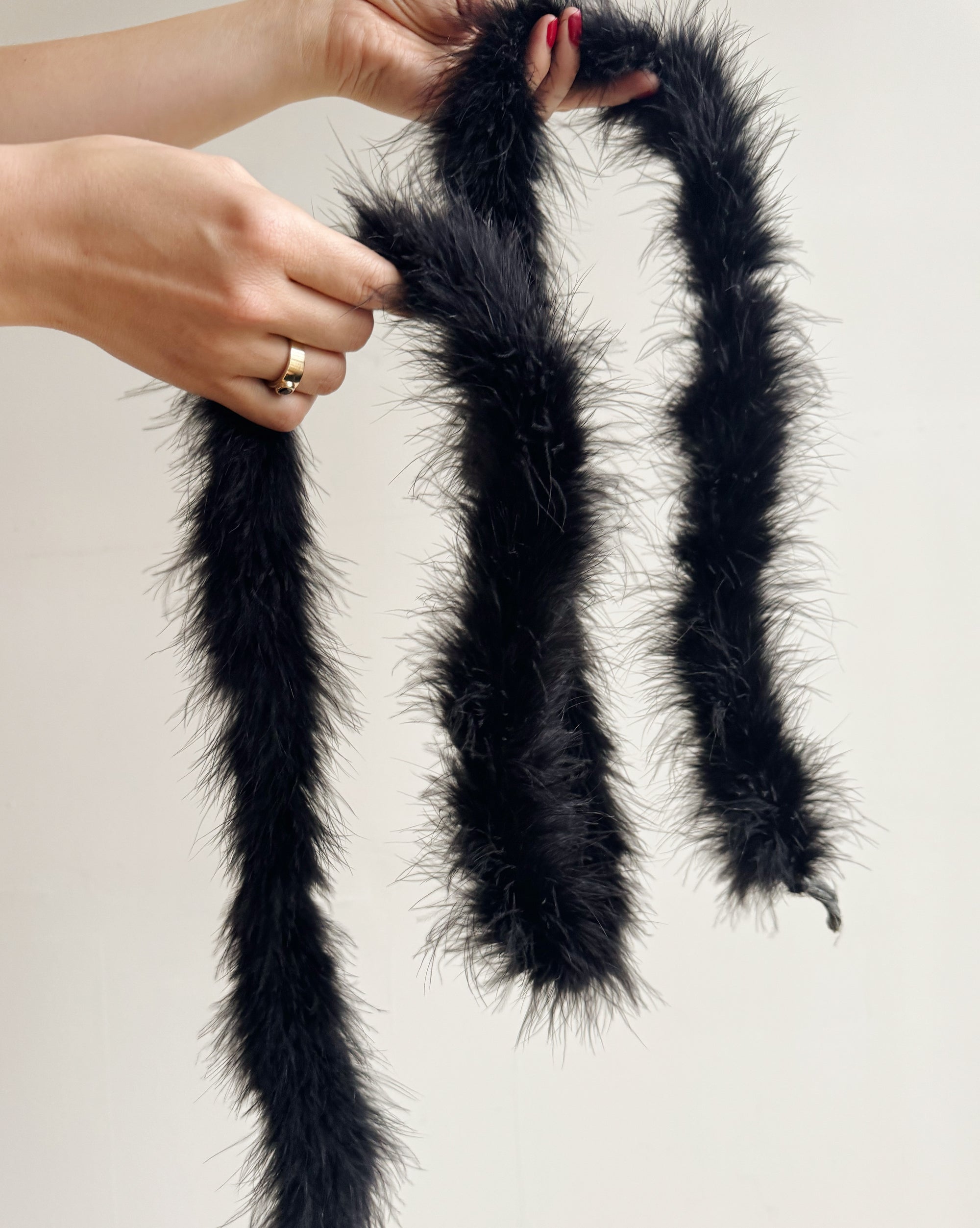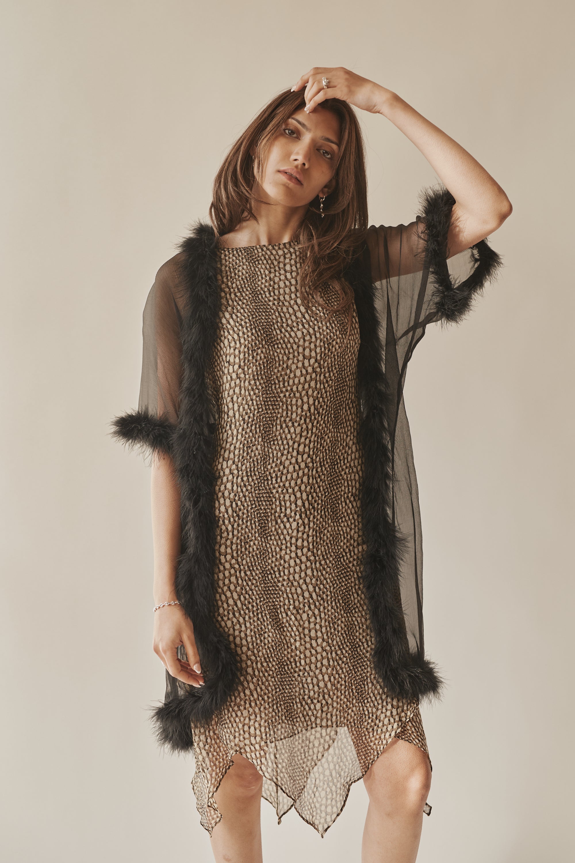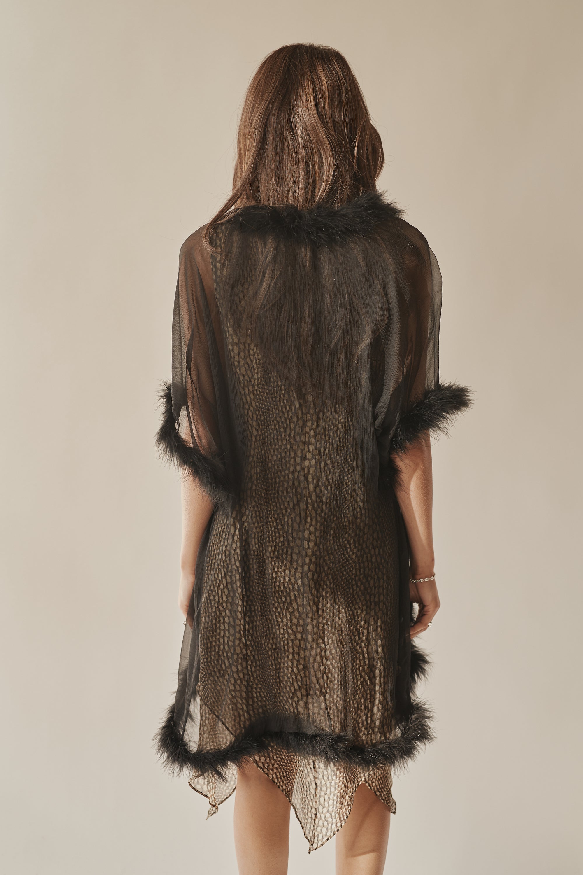 Sheer Silk Black Robe With Ostrich Plume Trim