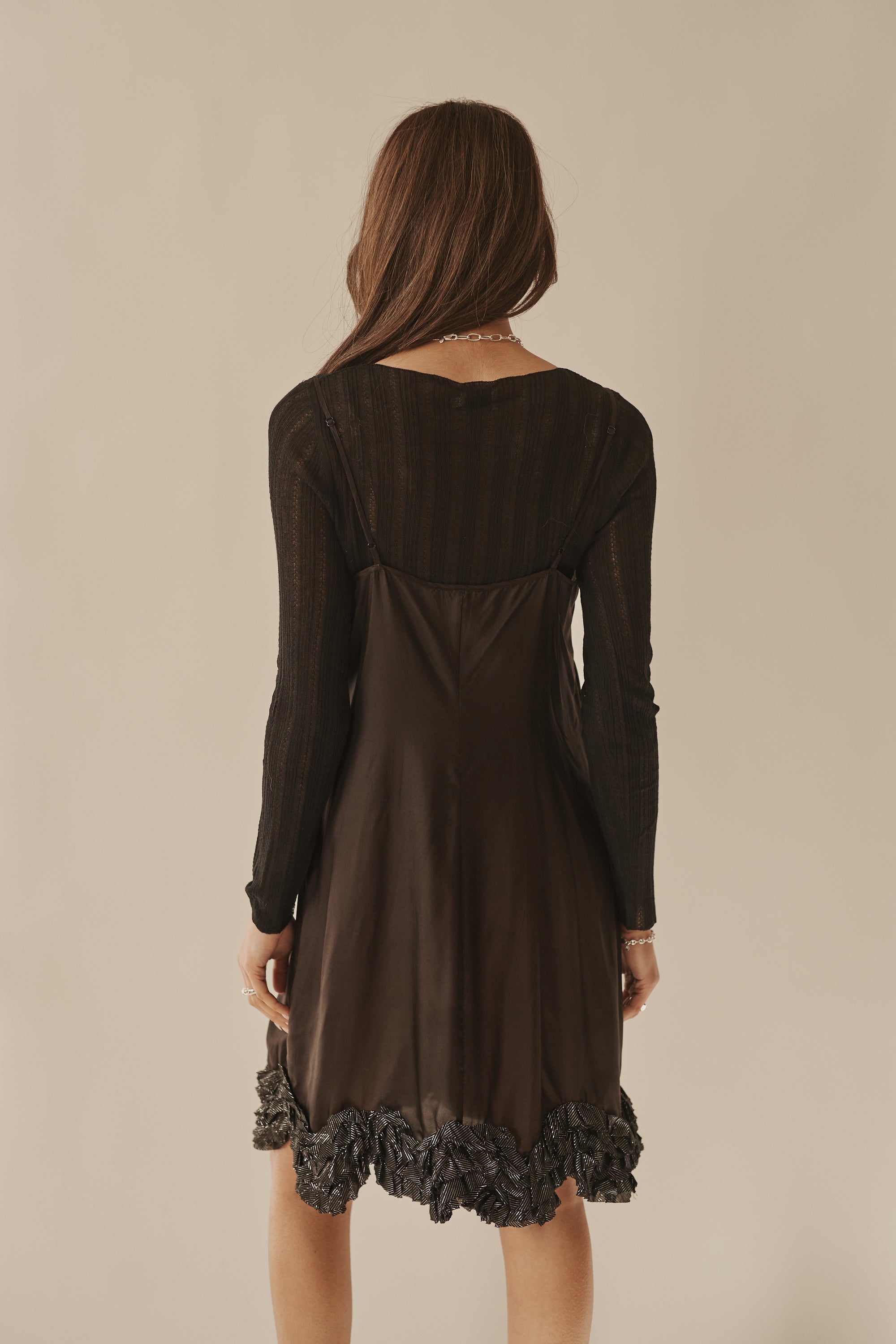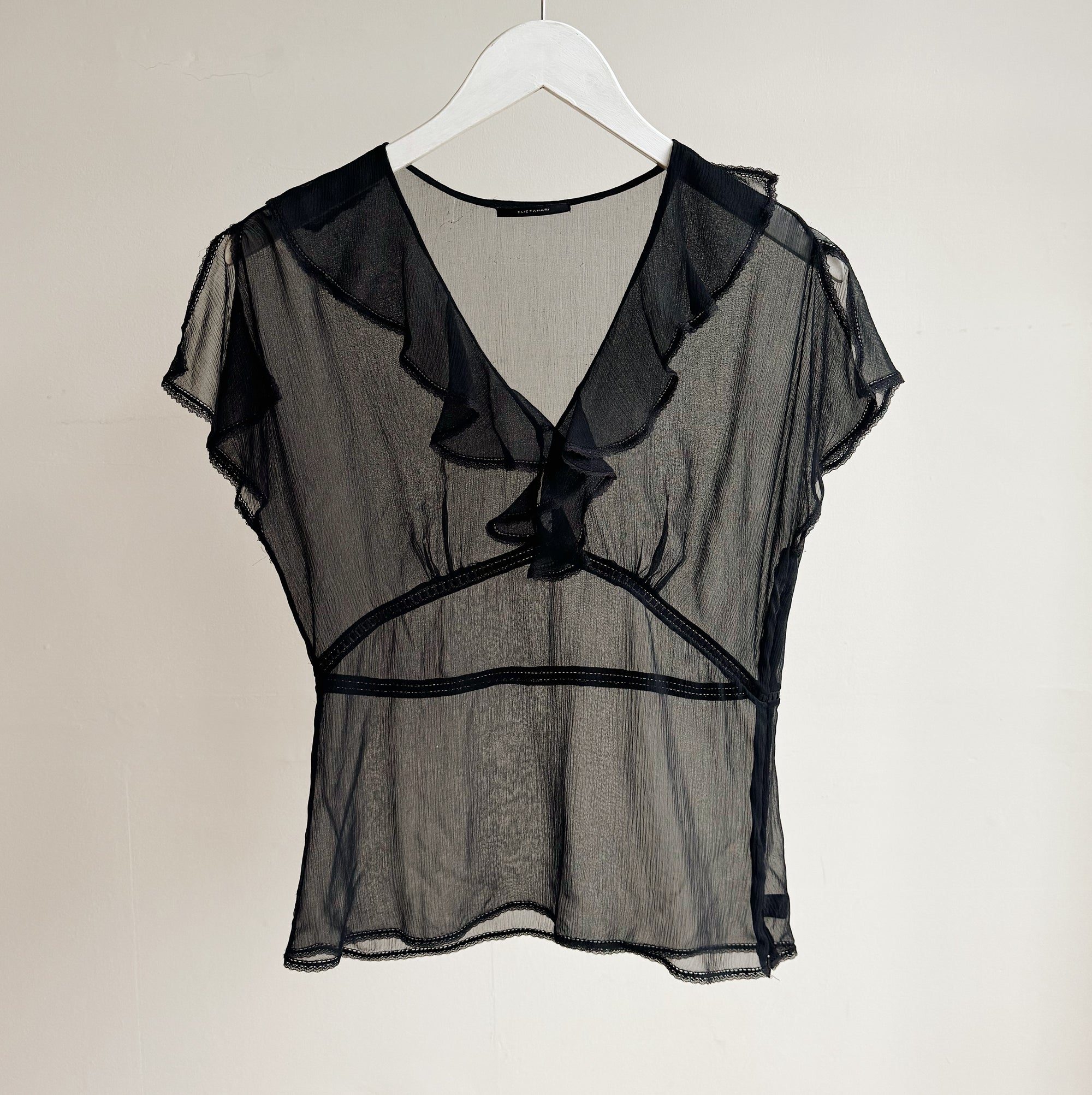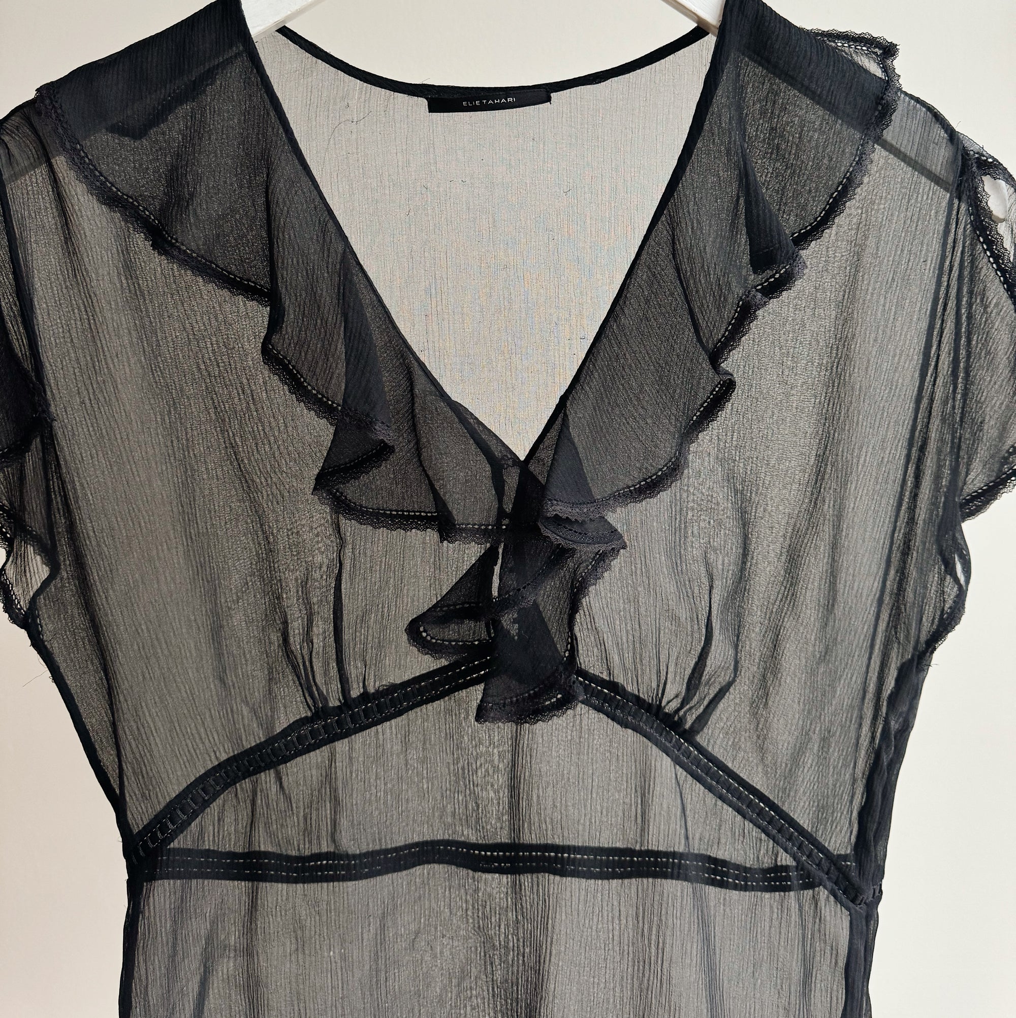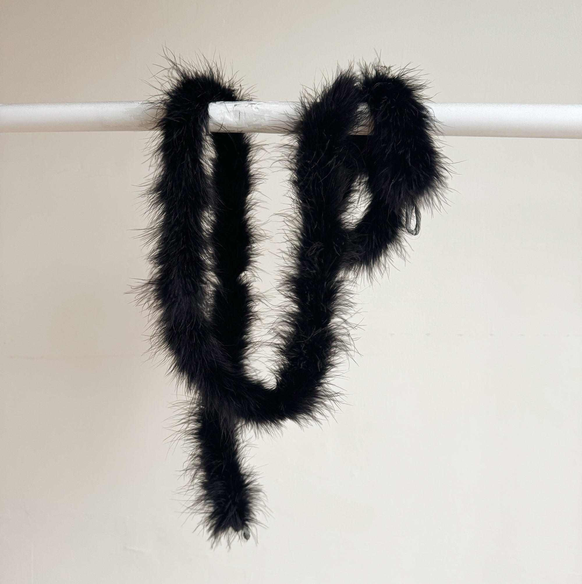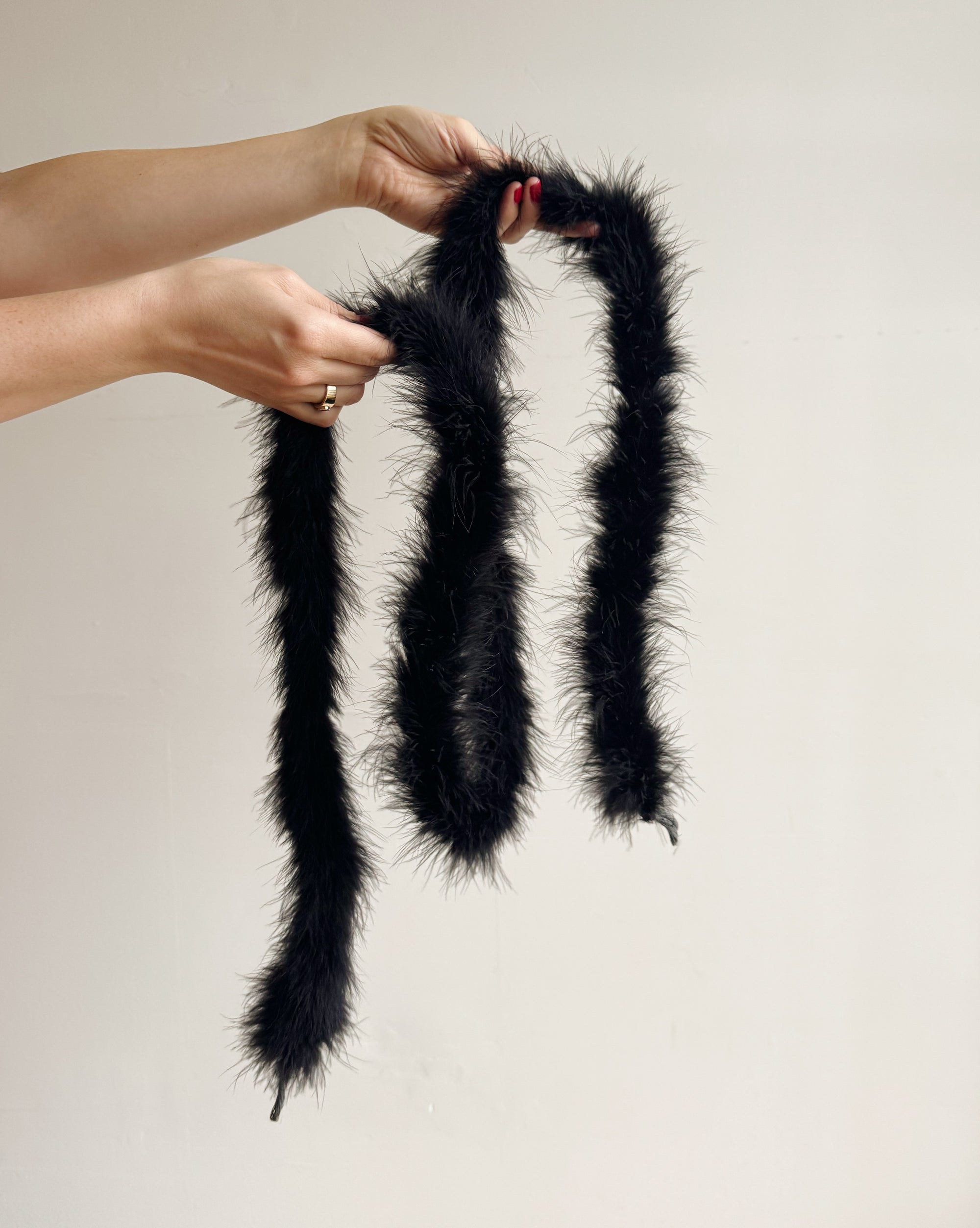 Sheer Silk Black Robe With Ostrich Plume Trim