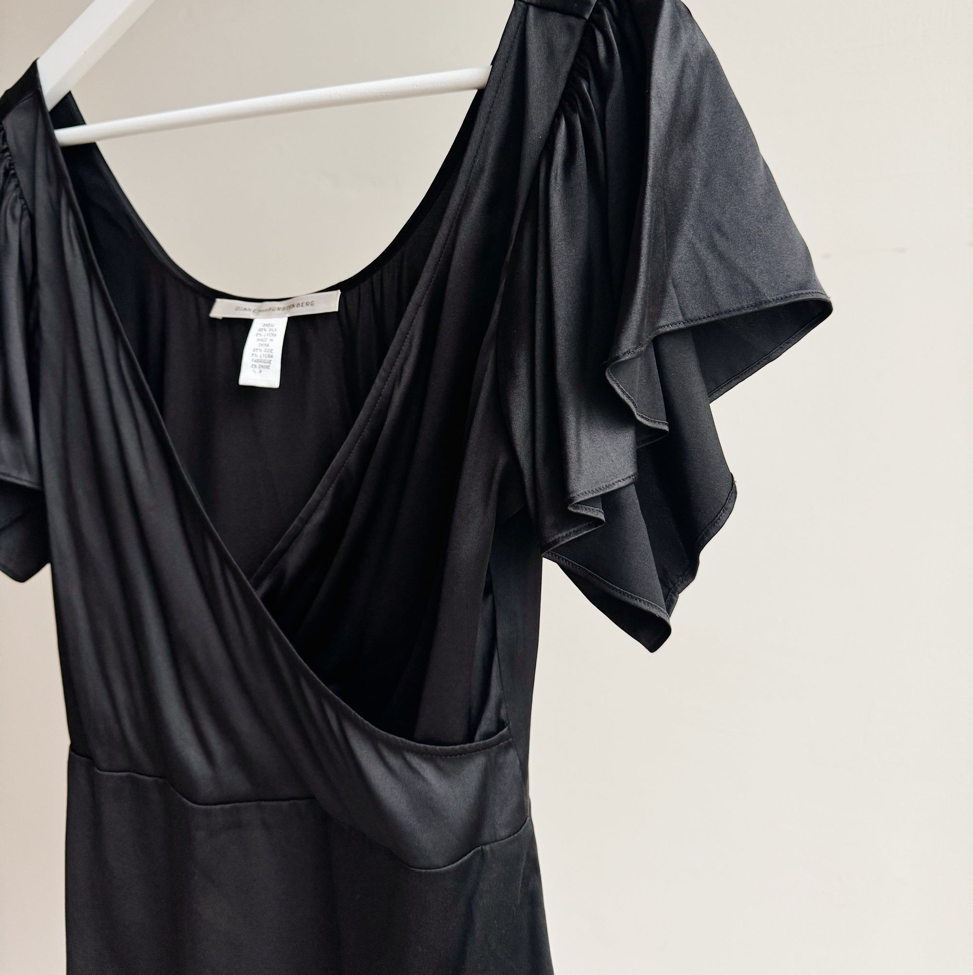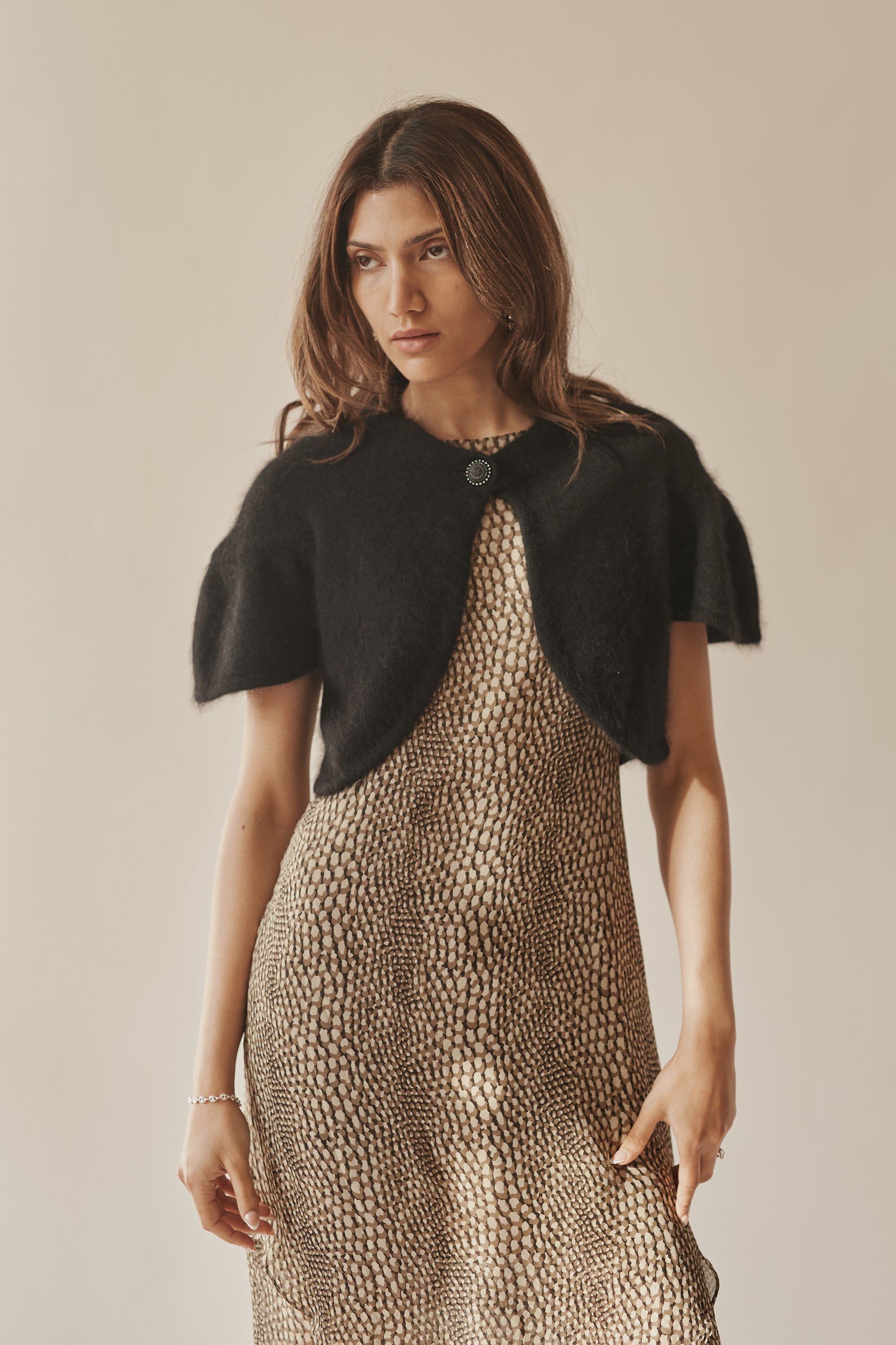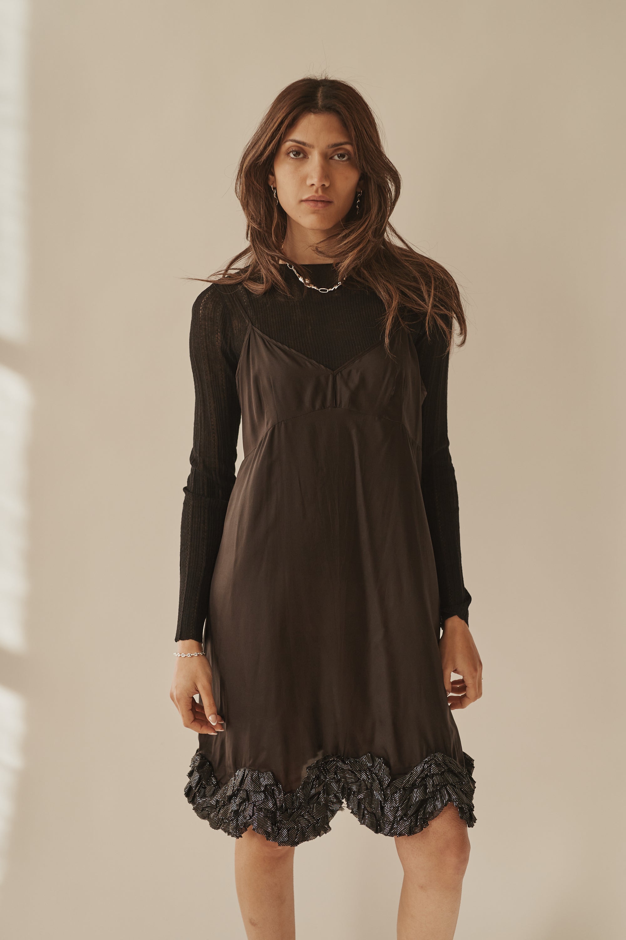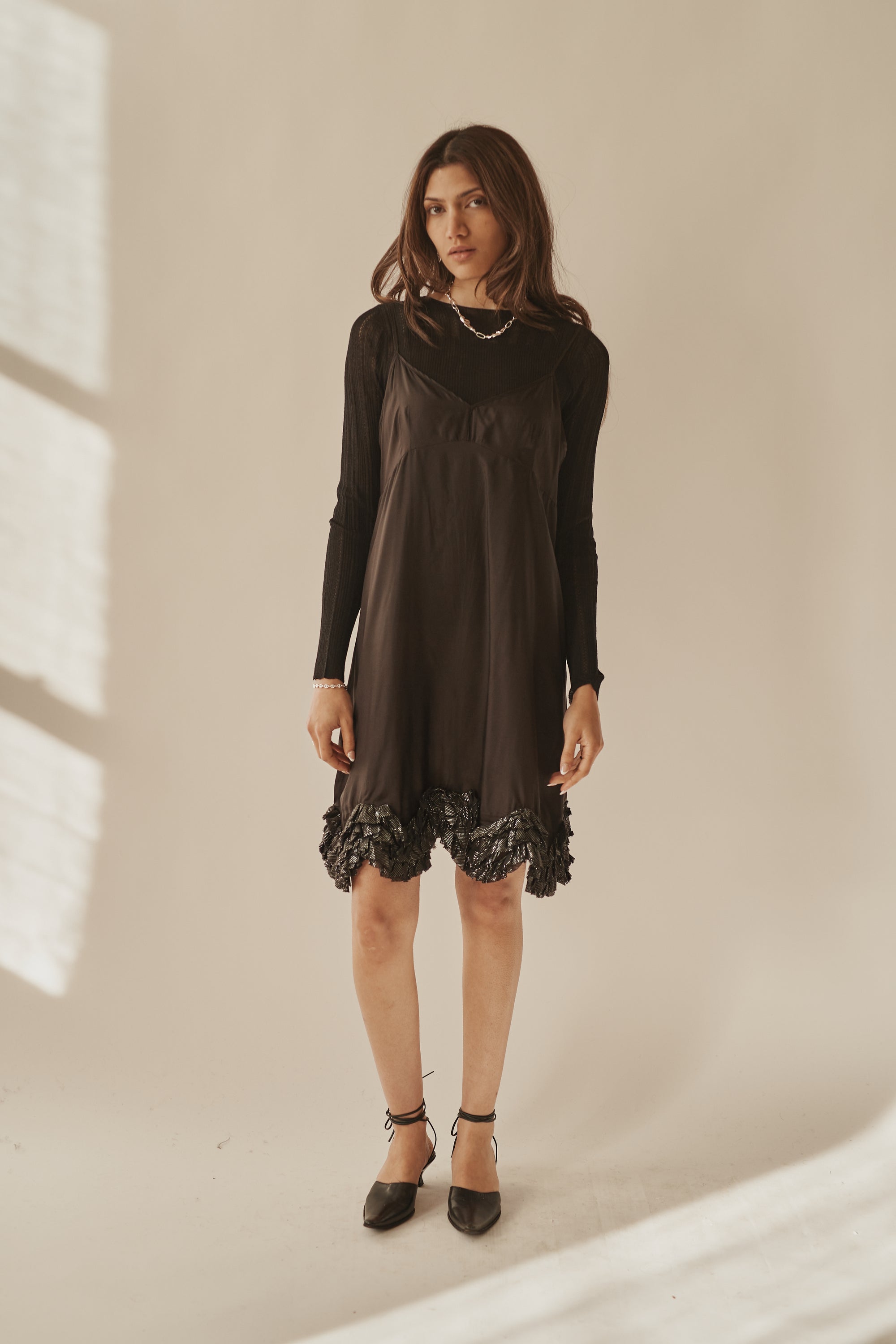 Sheer Silk Black Robe With Ostrich Plume Trim