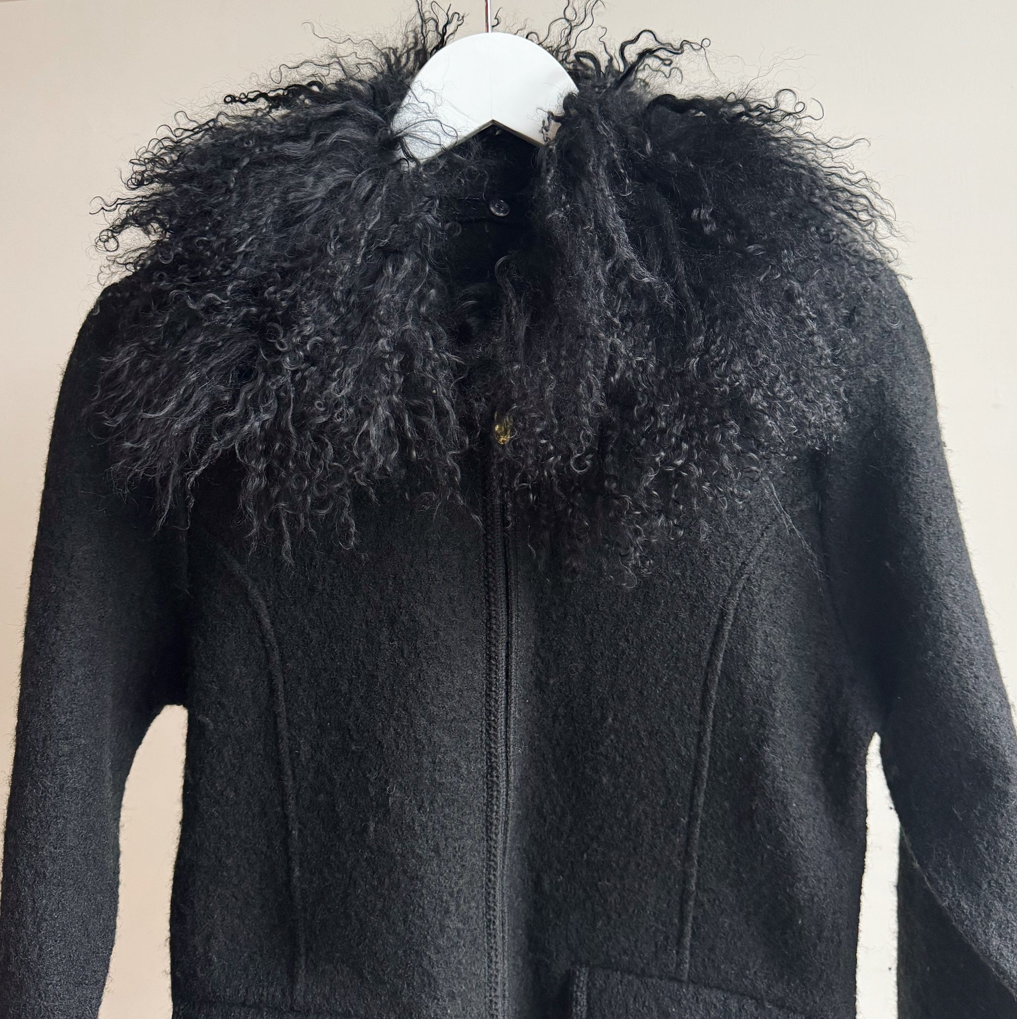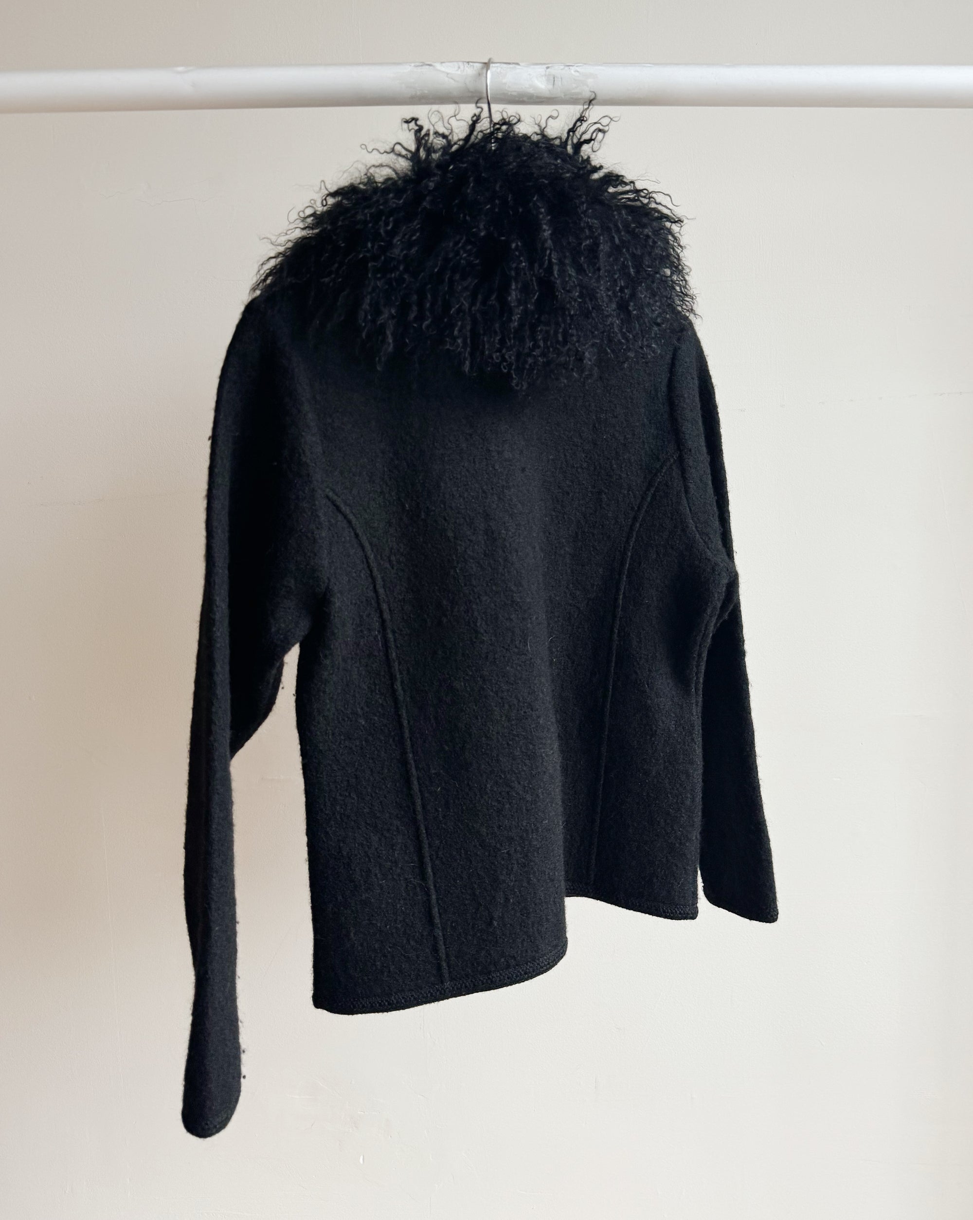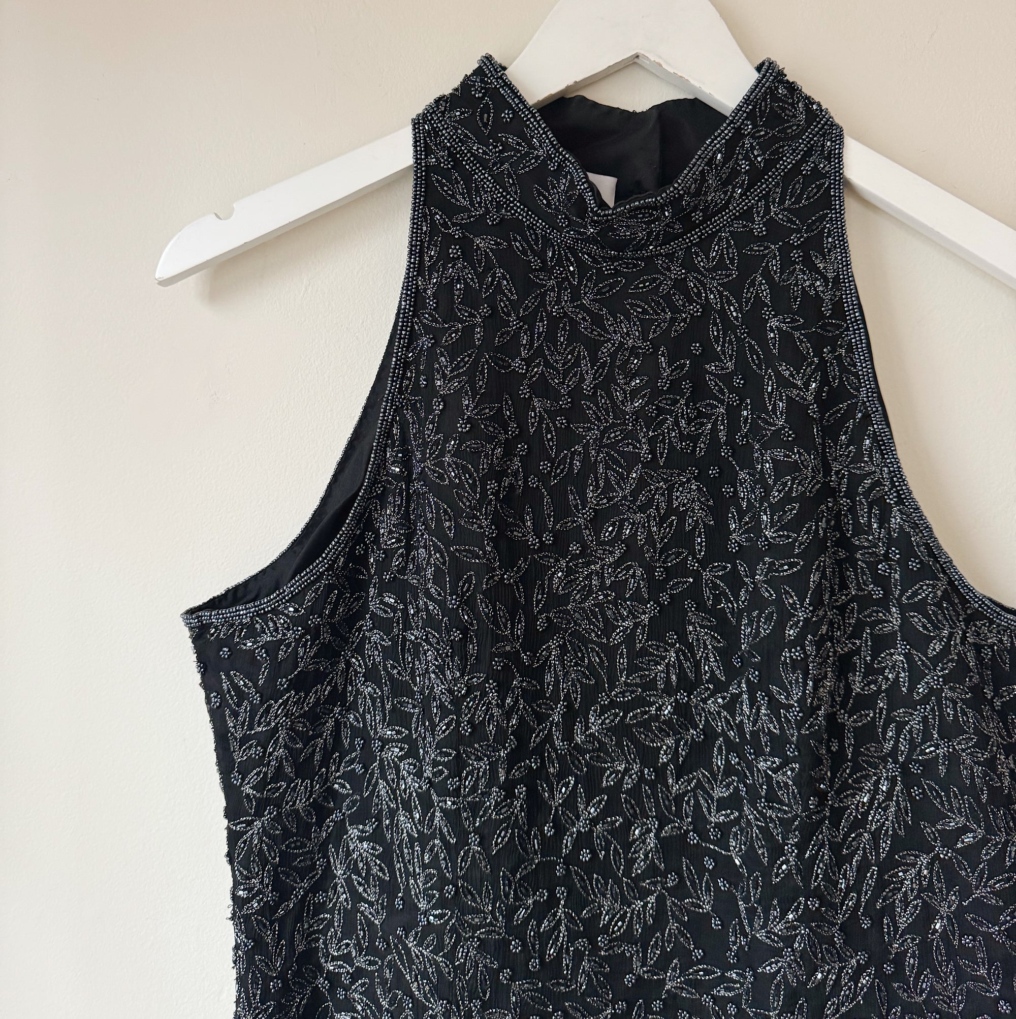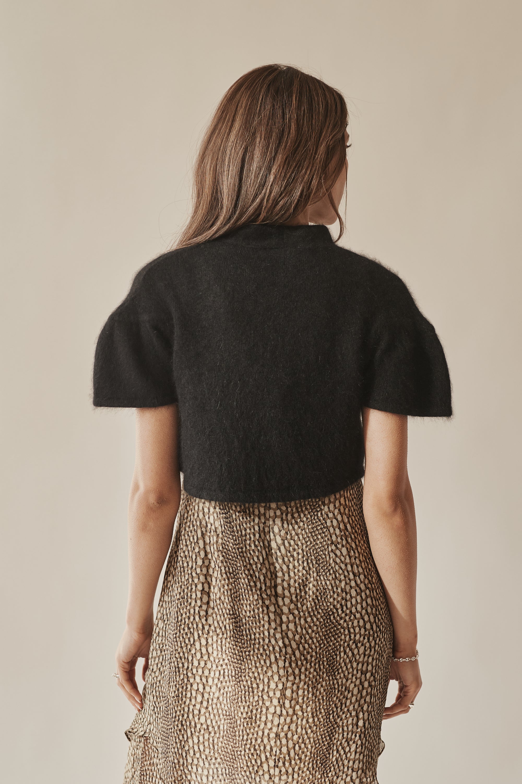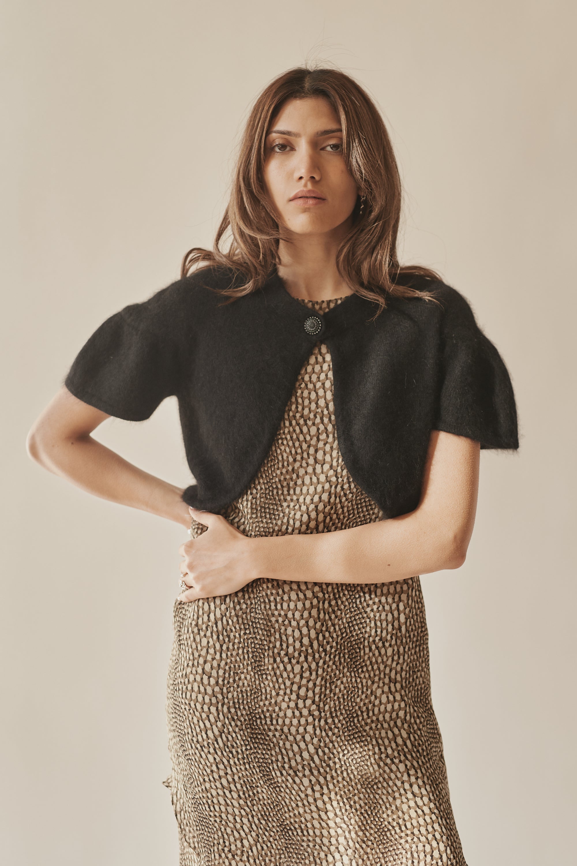 Sheer Silk Black Robe With Ostrich Plume Trim