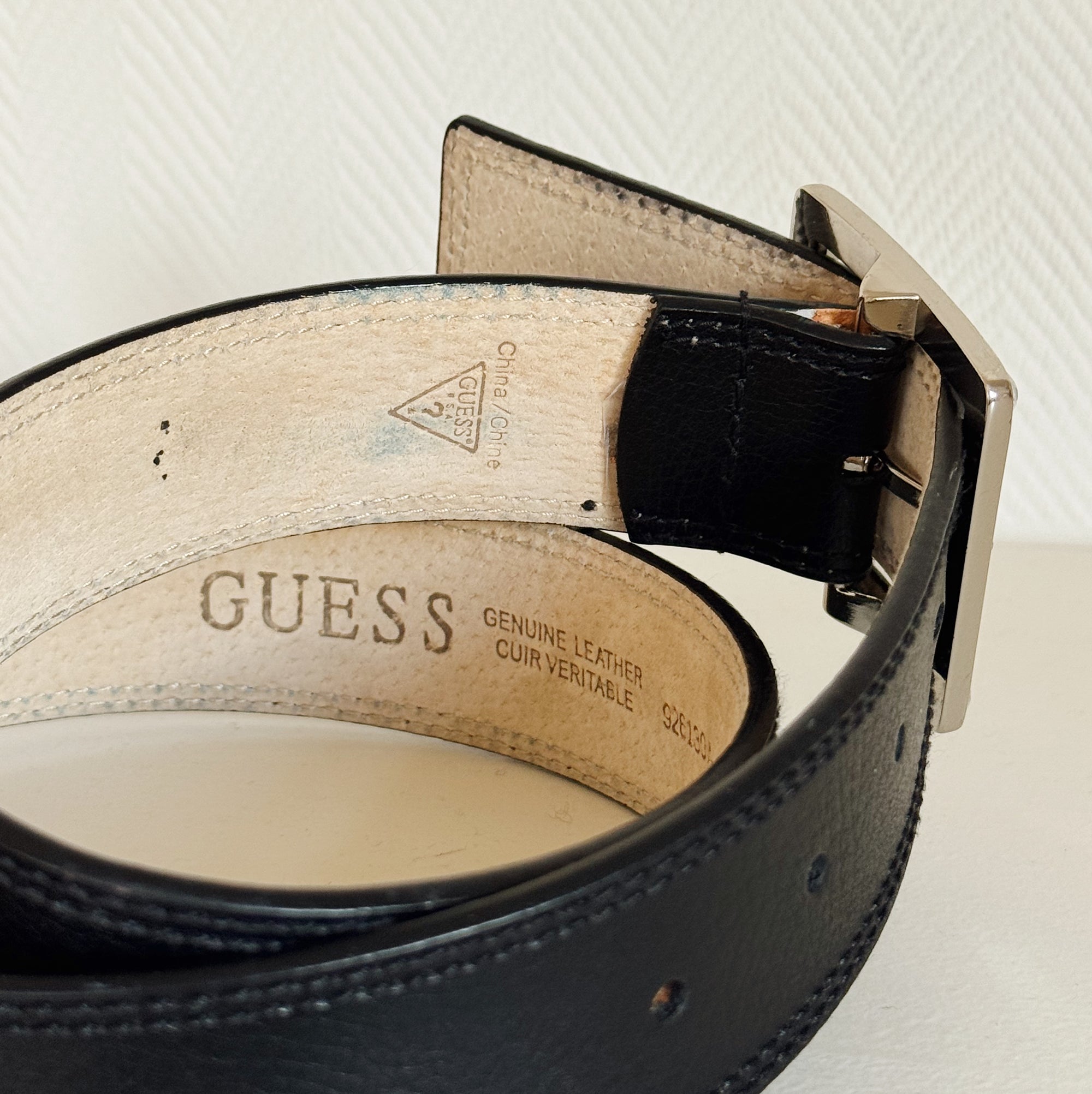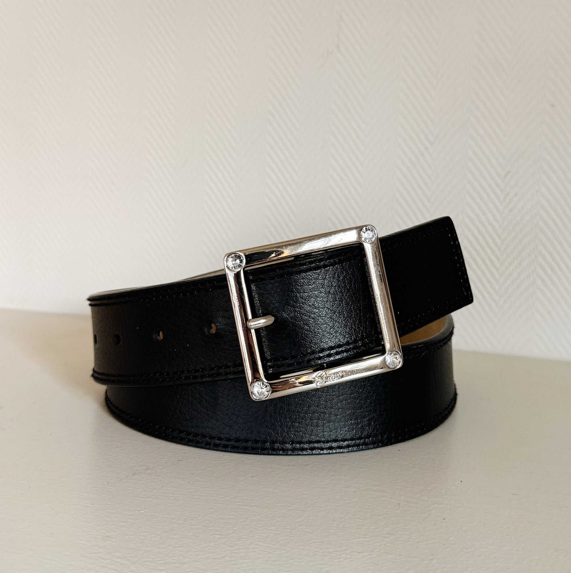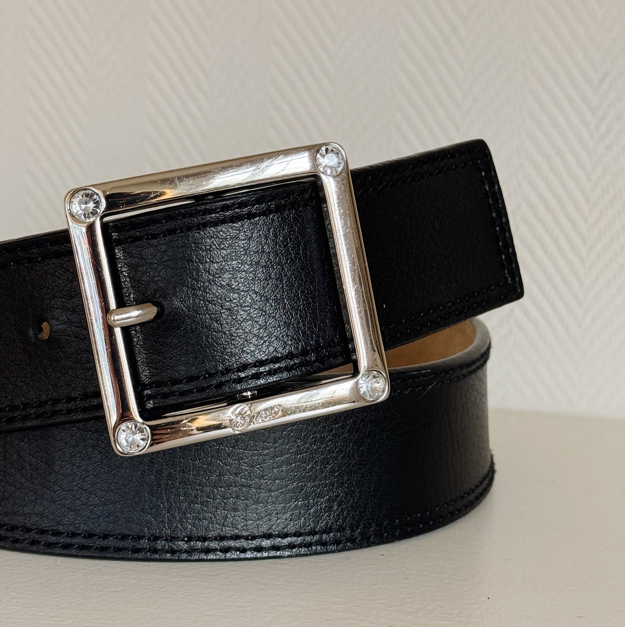Ink Leather Belt With Crystal Buckle
