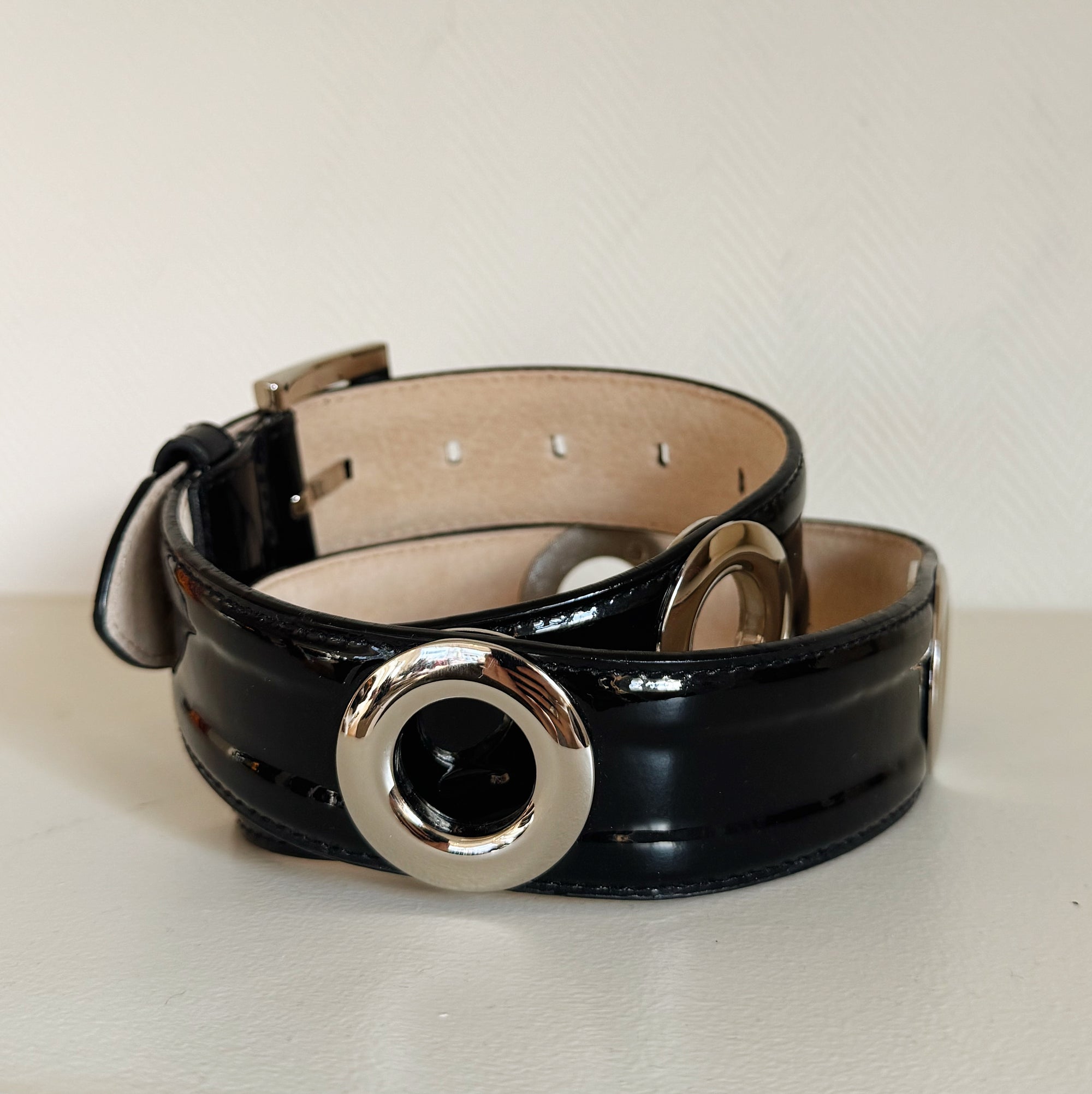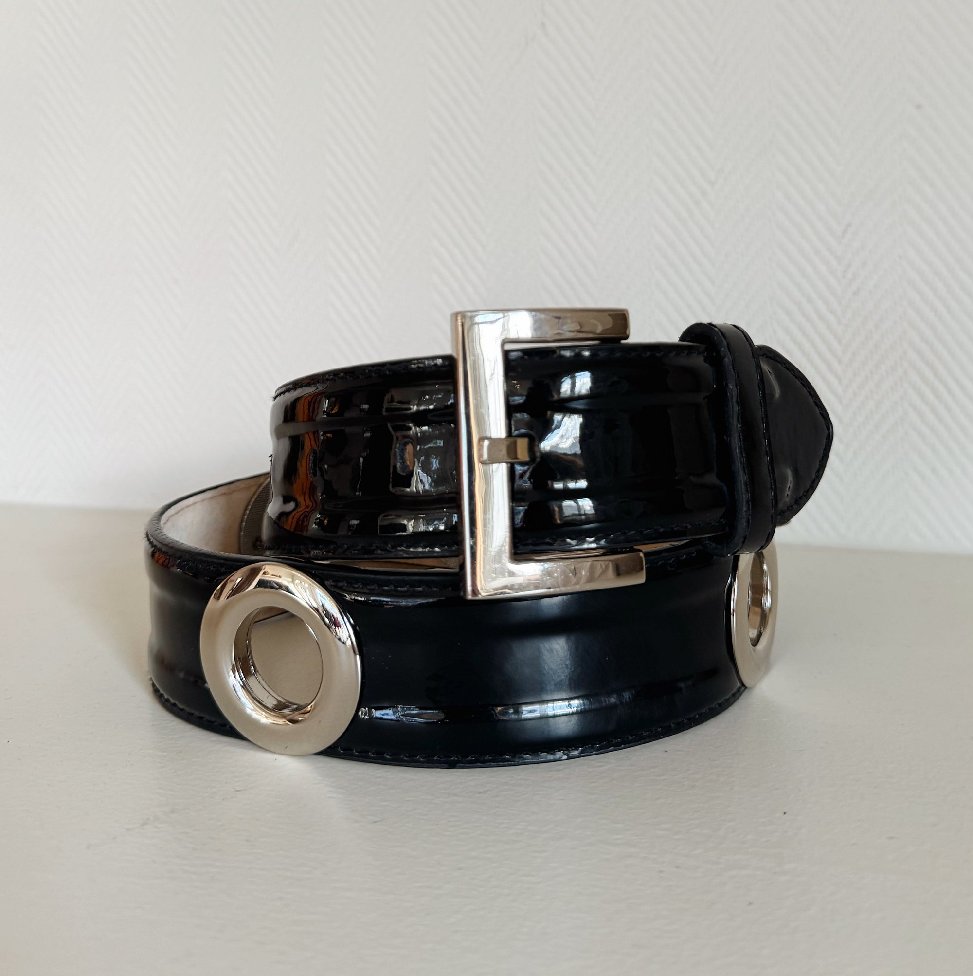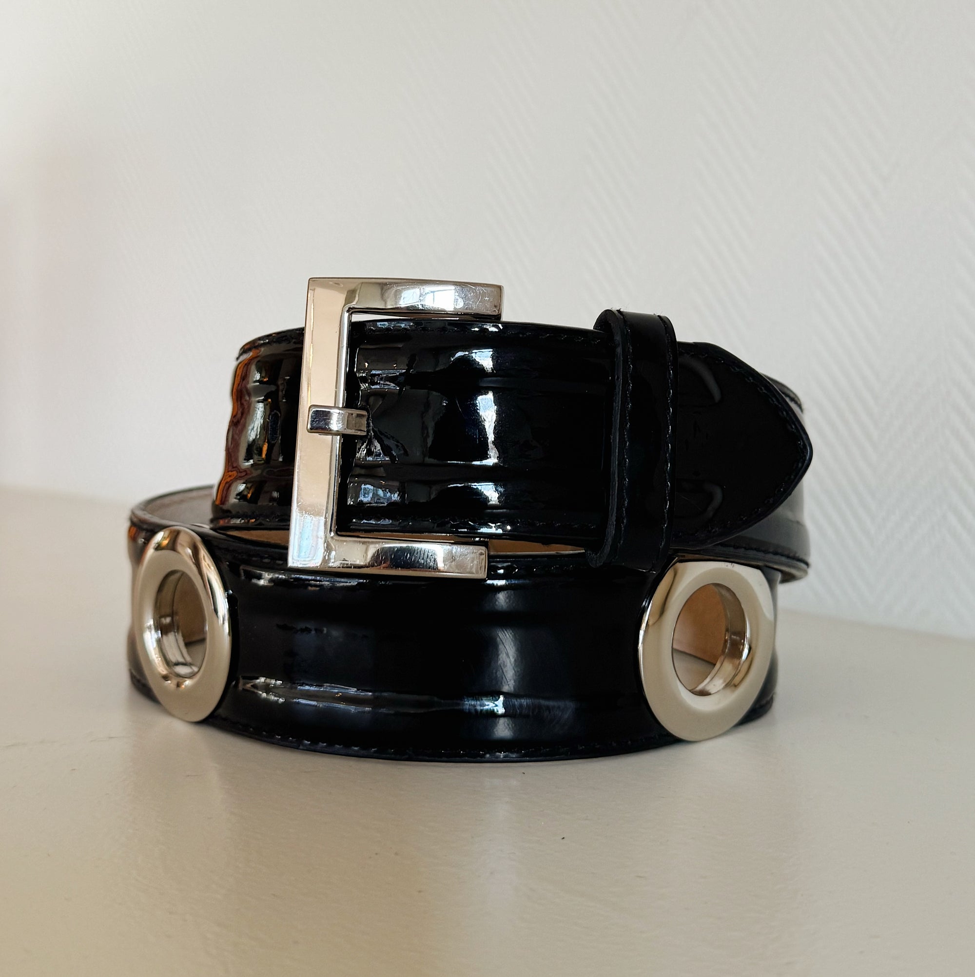 Black Patent Belt With Grommets